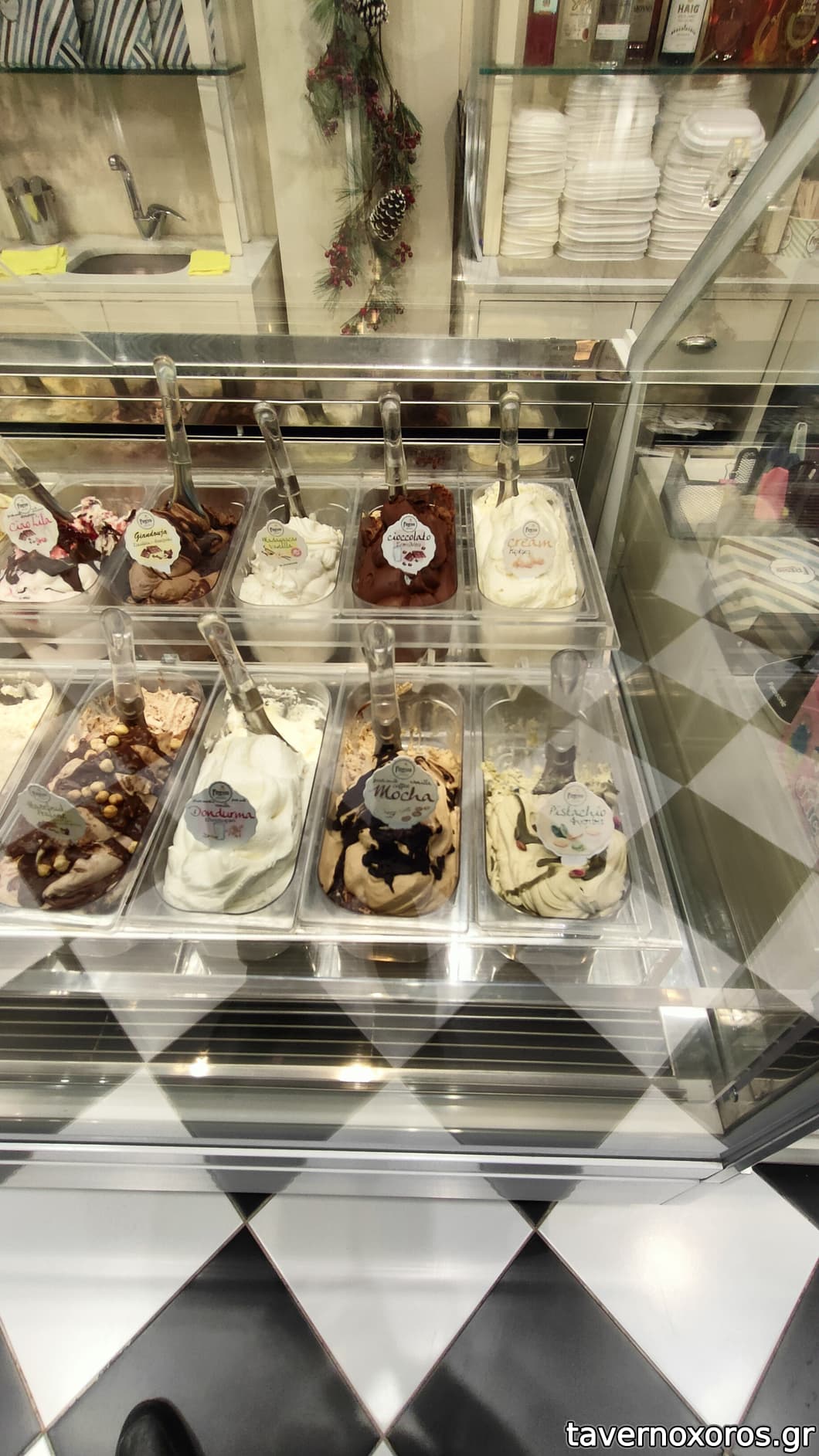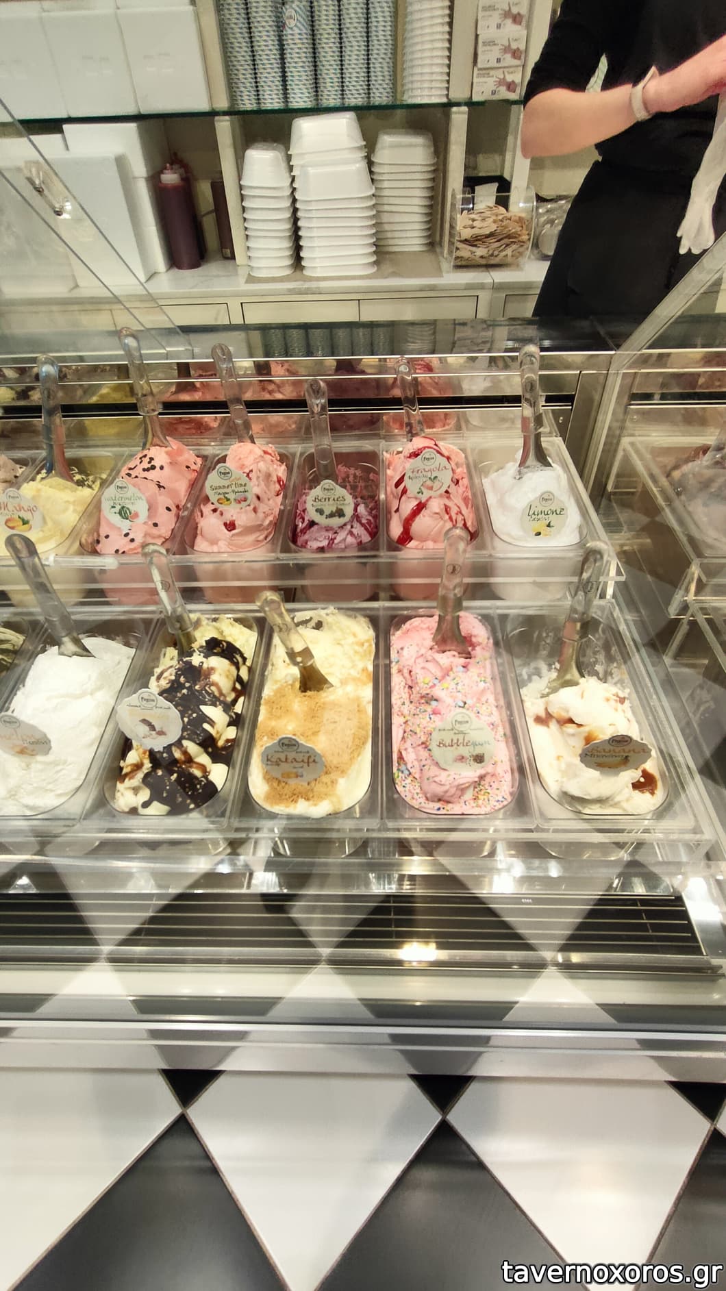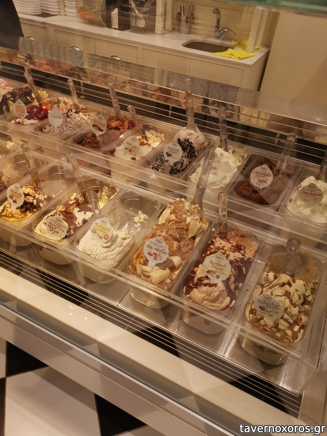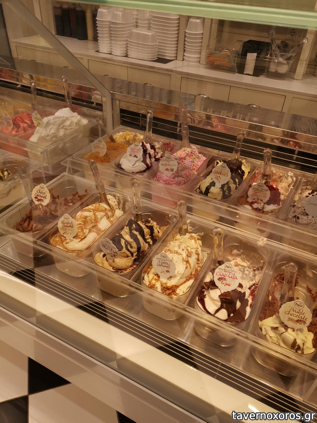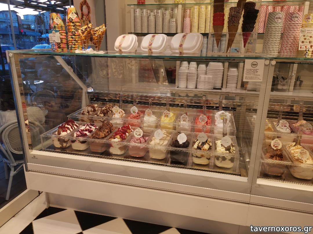 Πολύ μεγάλη ποικιλία γεύσεων ώστε κάποιος που πάει για πρώτη φορά να δυσκολεύεται να αποφασίσει ενώ έχει διάφορα μεγέθη ποσοτικά σε κυπελλάκια.