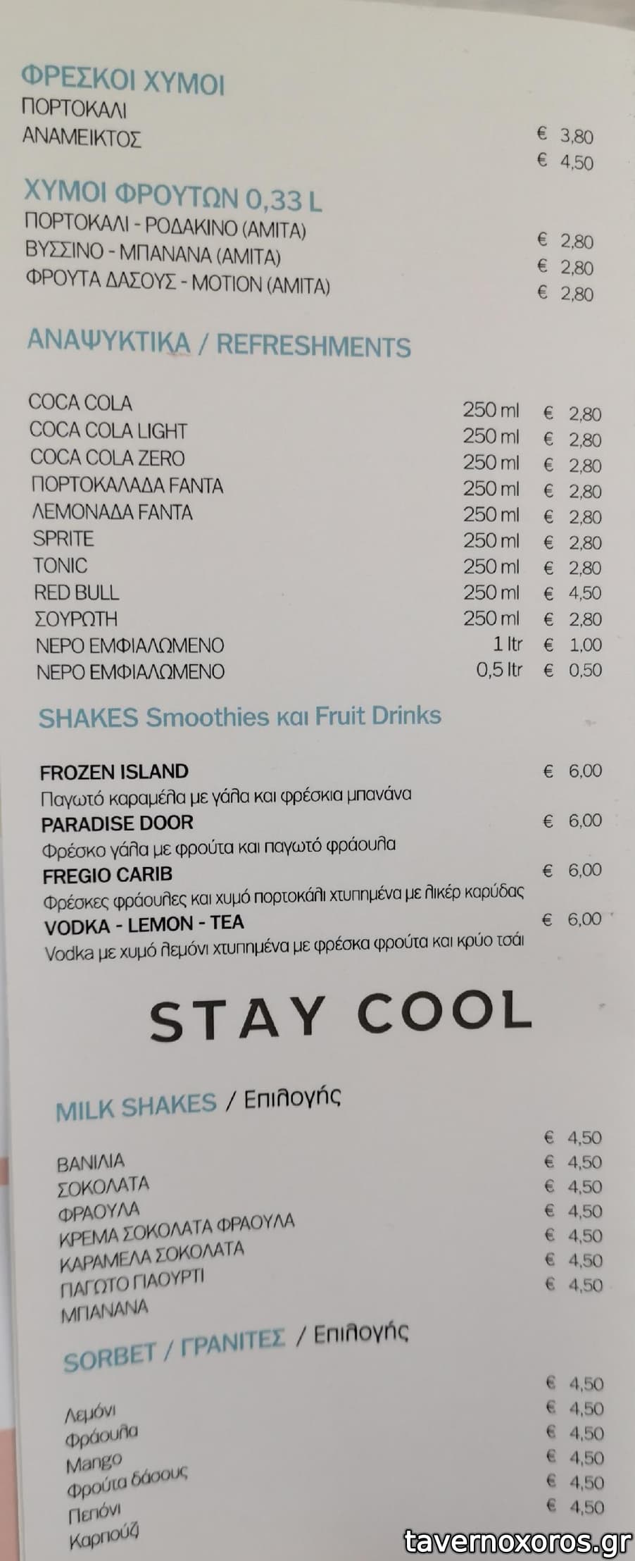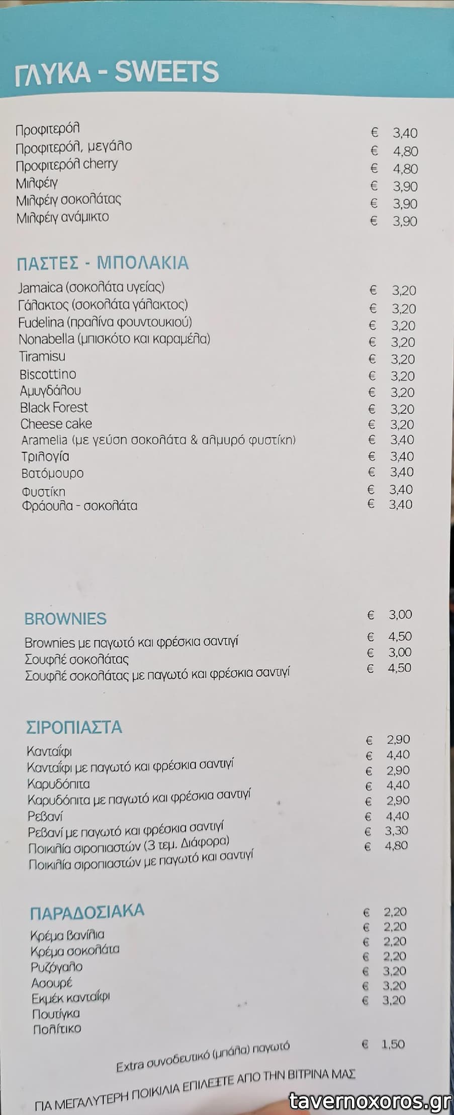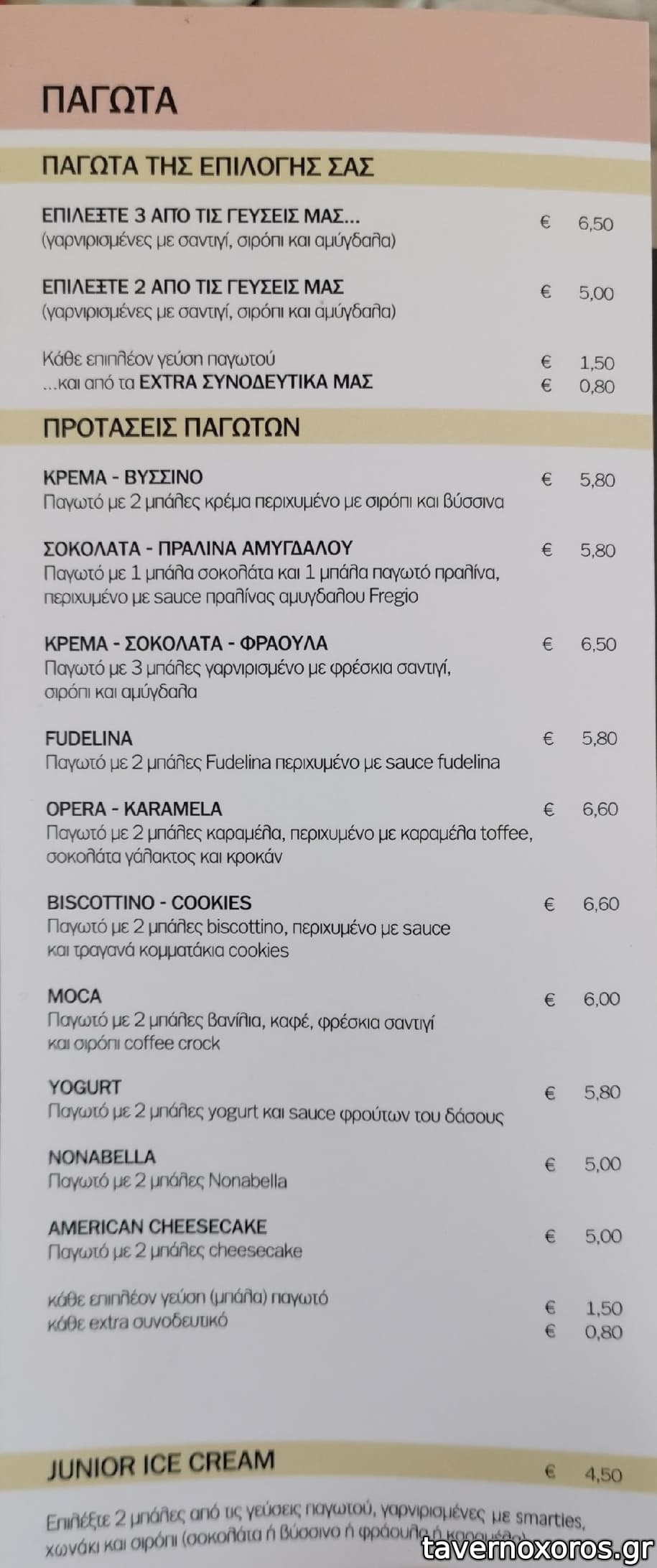 Παγωτό με 2 μπάλες 5 Ε , κάθε επιπλέον μπάλα συν 1,