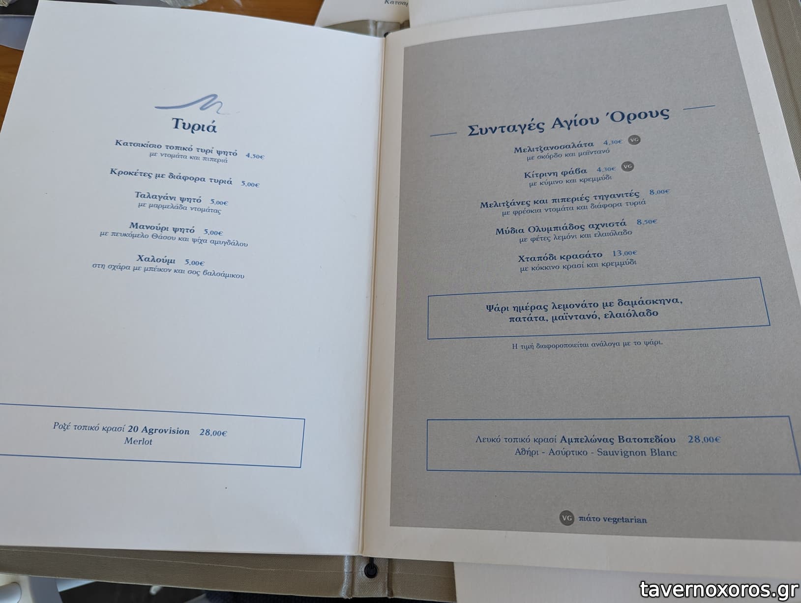 | Λέξεις κλειδιά | #ορκίνι, #ξαπλώστρες, #parking, #ψαρόσουπα, #γαρίδες, #μανιτάρια, #μελιτζάνα τηγανητή, #πιπεριές, #κολοκυθάκια, #φάβα, #μύδια, #χταπόδι, #ντάκος, #ταμπουλέ, #κοκκινιστό, #χαλούμι, #κοτόσουπα, #ζυμαρικά, #μπακαλιάρος, #σαρδέλα, #γαύρος, #μπαρμπούνια, #ψαρονέφρι, #κοτόπουλο, #σουβλάκια, #μπιφτέκι, #πανσέτα, #χοιρινή, #μοσχαρίσια μπριζόλα, #steaks, #ωρίμανσης, #μπύρα βαρελίσια, #κανταΐφι |