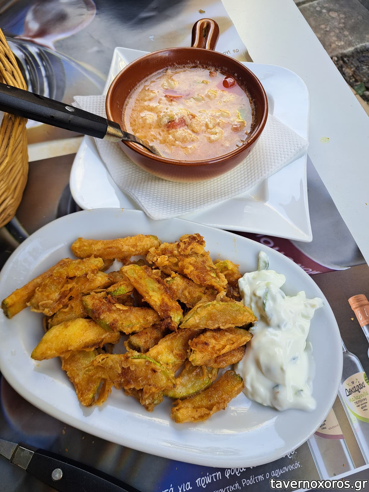 Κολοκυθάκια τηγανητά (κακό λάδι), μπουγιουρντί (ΟΚ)