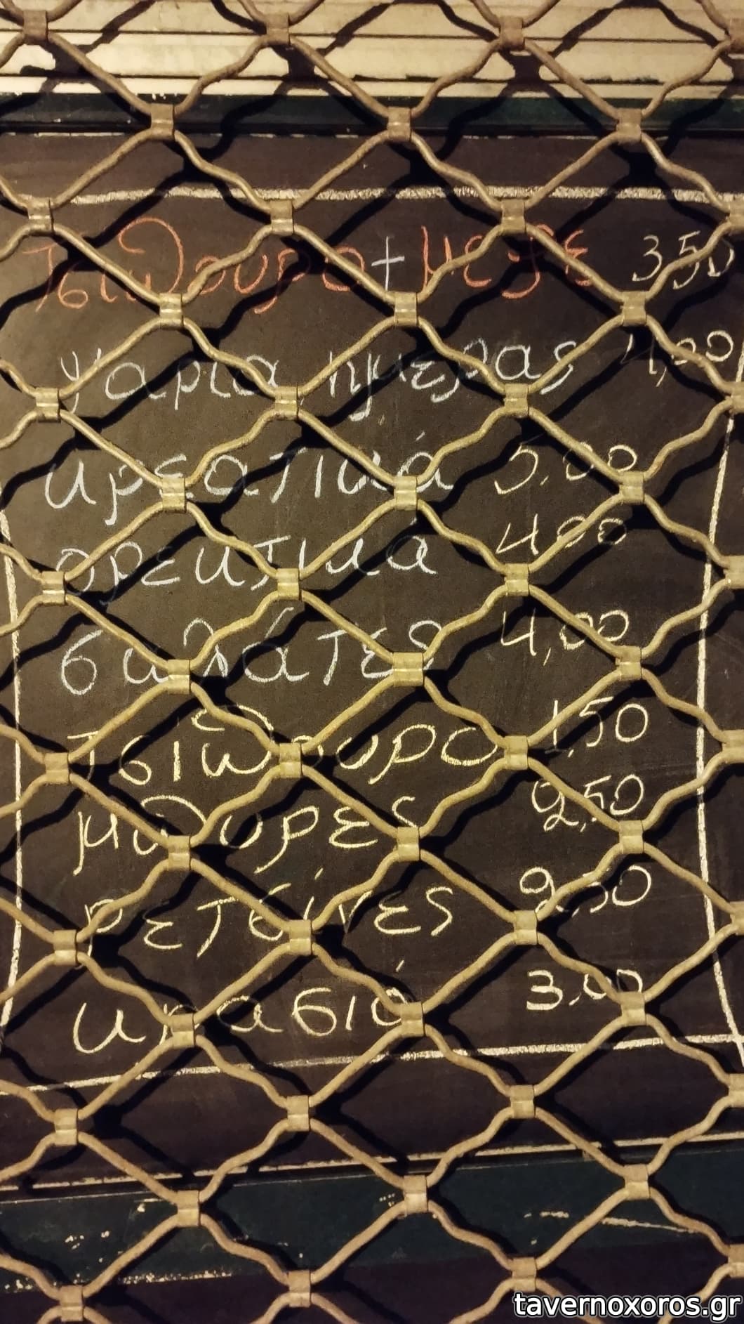 Κατάλογος με λίγα πράγματα σε μαυροπίνακα. Οι τιμές είναι χαμηλές αλλά και οι μερίδες μικρές.