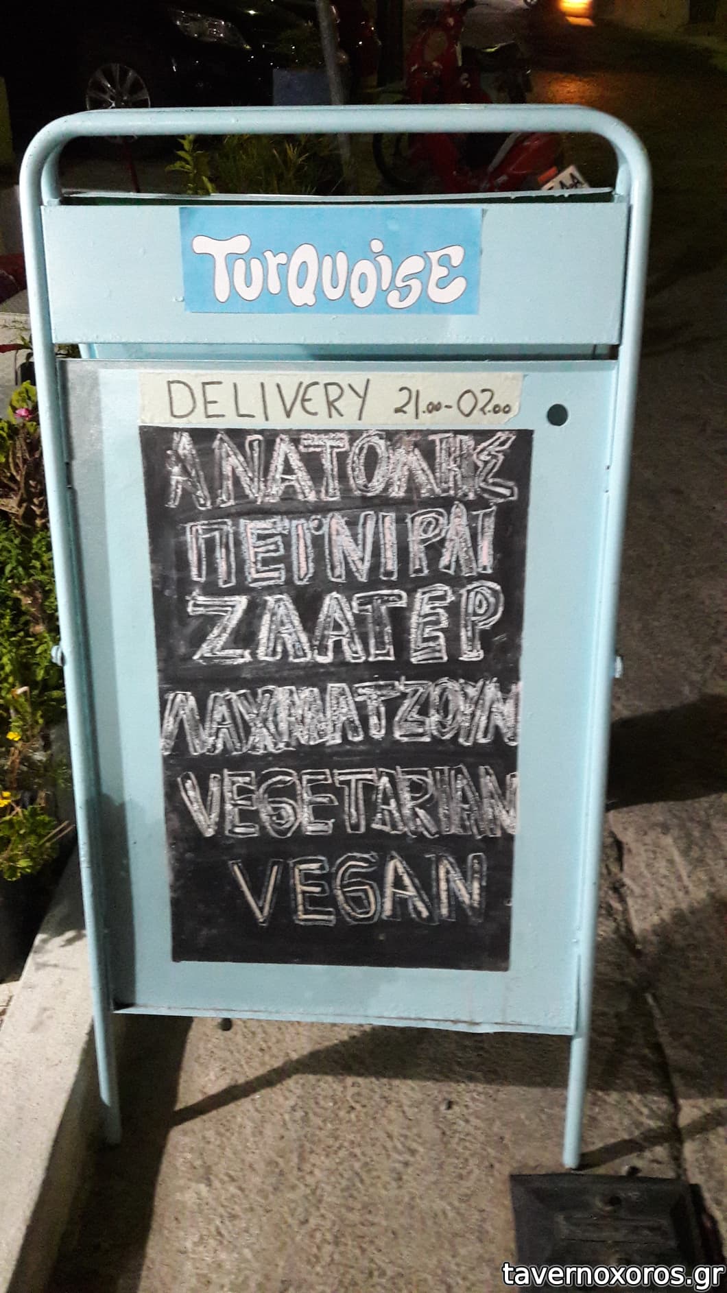 Το μαγαζί είναι μια ευχάριστη έκπληξη, μια αλλαγή από την κουζίνα που μπορείς να βρεις στο νησί αφού προσφέρει ανατολίτικες γεύσεις όπως πεϊνιρλί, λαχματζούν και ζααταρ (αράβικη πίτα με μιξ απο ξηρούς καρπούς και μυρωδικά, πολύ διαφορετικό και γευστικό). Το πεϊνιρλί το έχει και με διάφορους παράξενους συνδιασμους όπως κοτόπουλο με φρούτα.