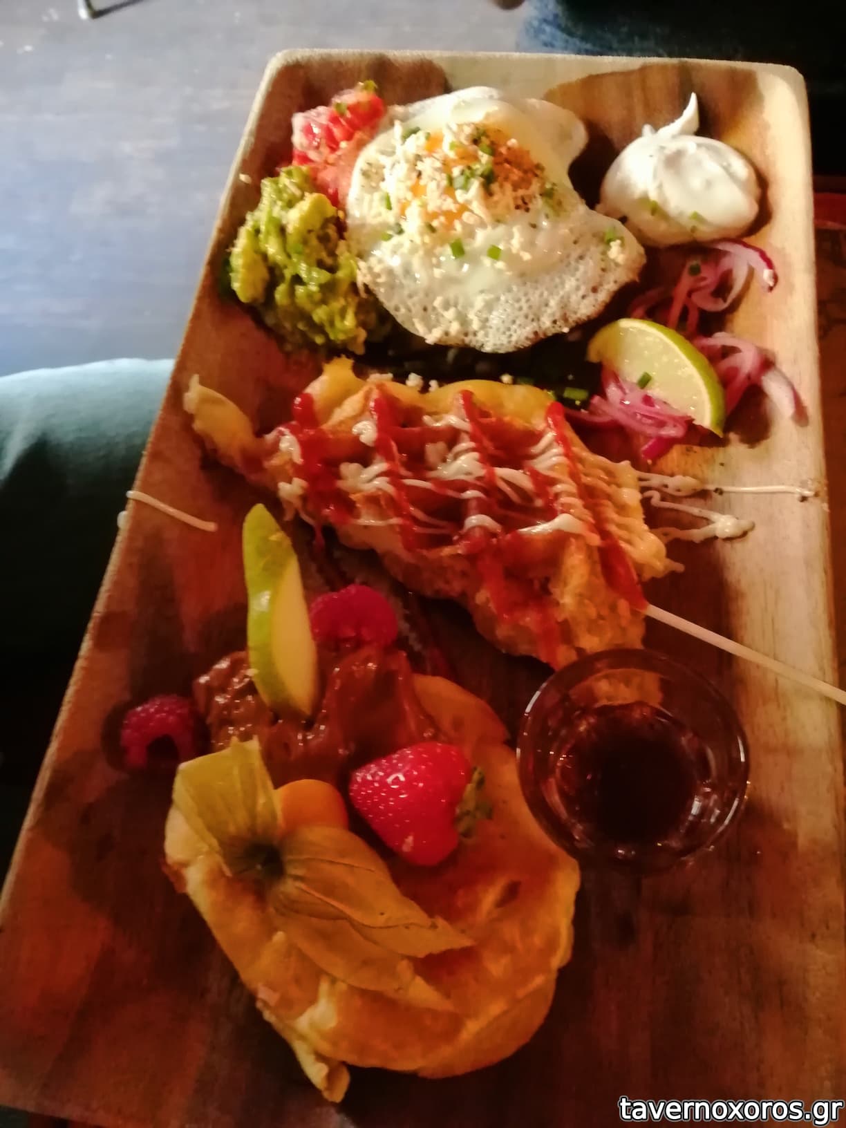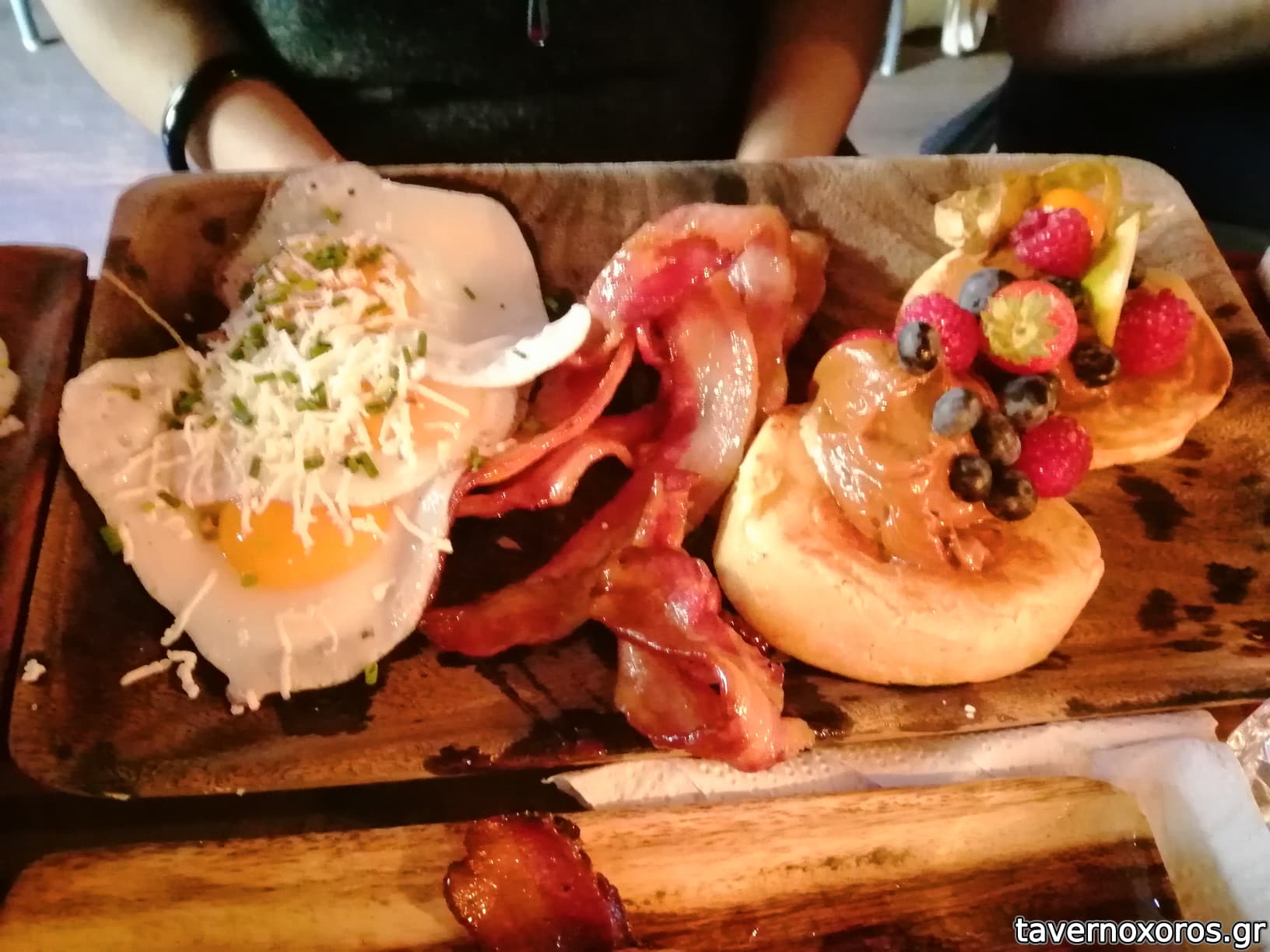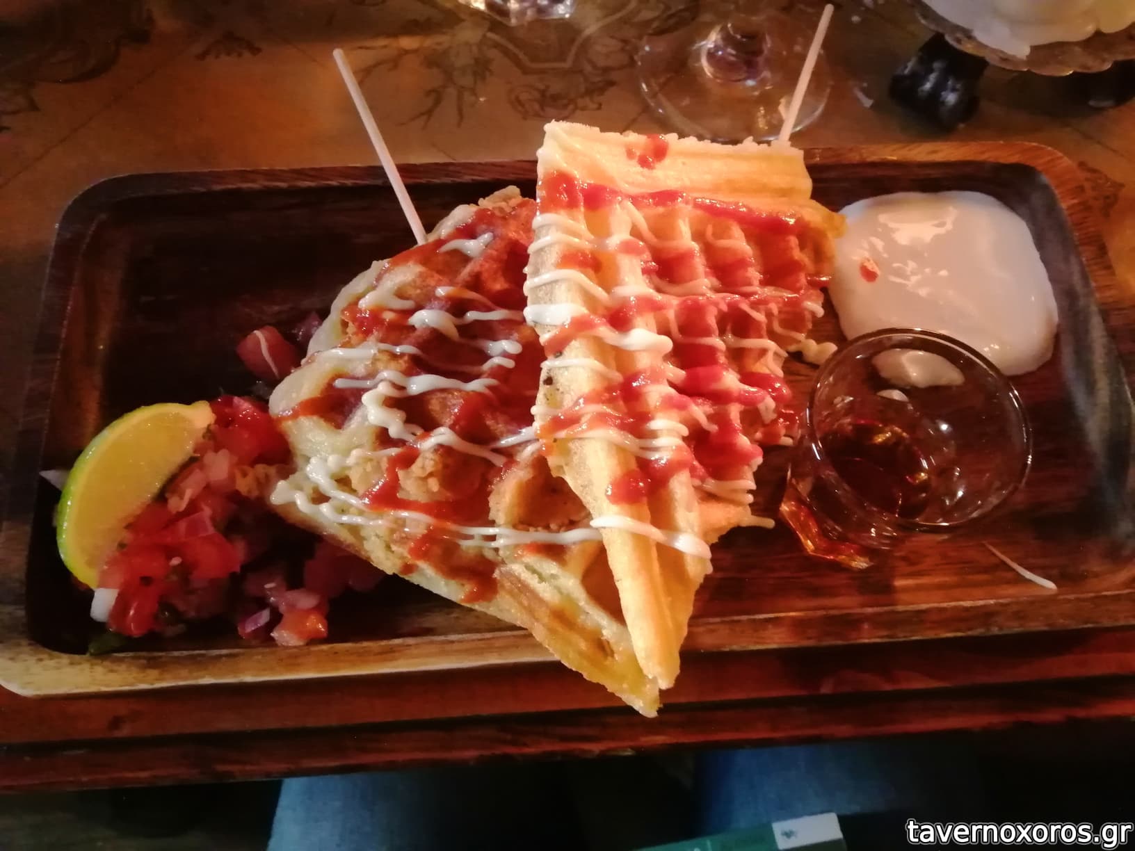Ας περάσουμε εν τάχει ορισμένα highlight: 1) το κοτόπουλο εντός της γλυκοκαυτερής βάφλας, ενί σώματι, 2) τα εξαιρετικώς αφράτα pancakes με την καταστρεπτική dulce de leche, 3) ο σεβασμός στο μπέηκον.