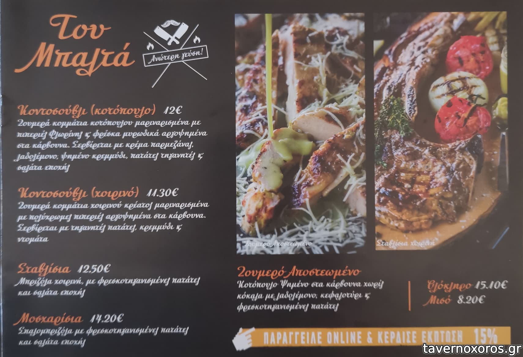 Τα σουβλάκια του για ψητοπωλείο είναι descent, δεν είναι όμως του γούστου μου γιατί απουσίαζε το λιπάκι. Τα σουτζουκάκια του ένα κλικ χαμηλότερα ενώ οι πατάτες προκάτ