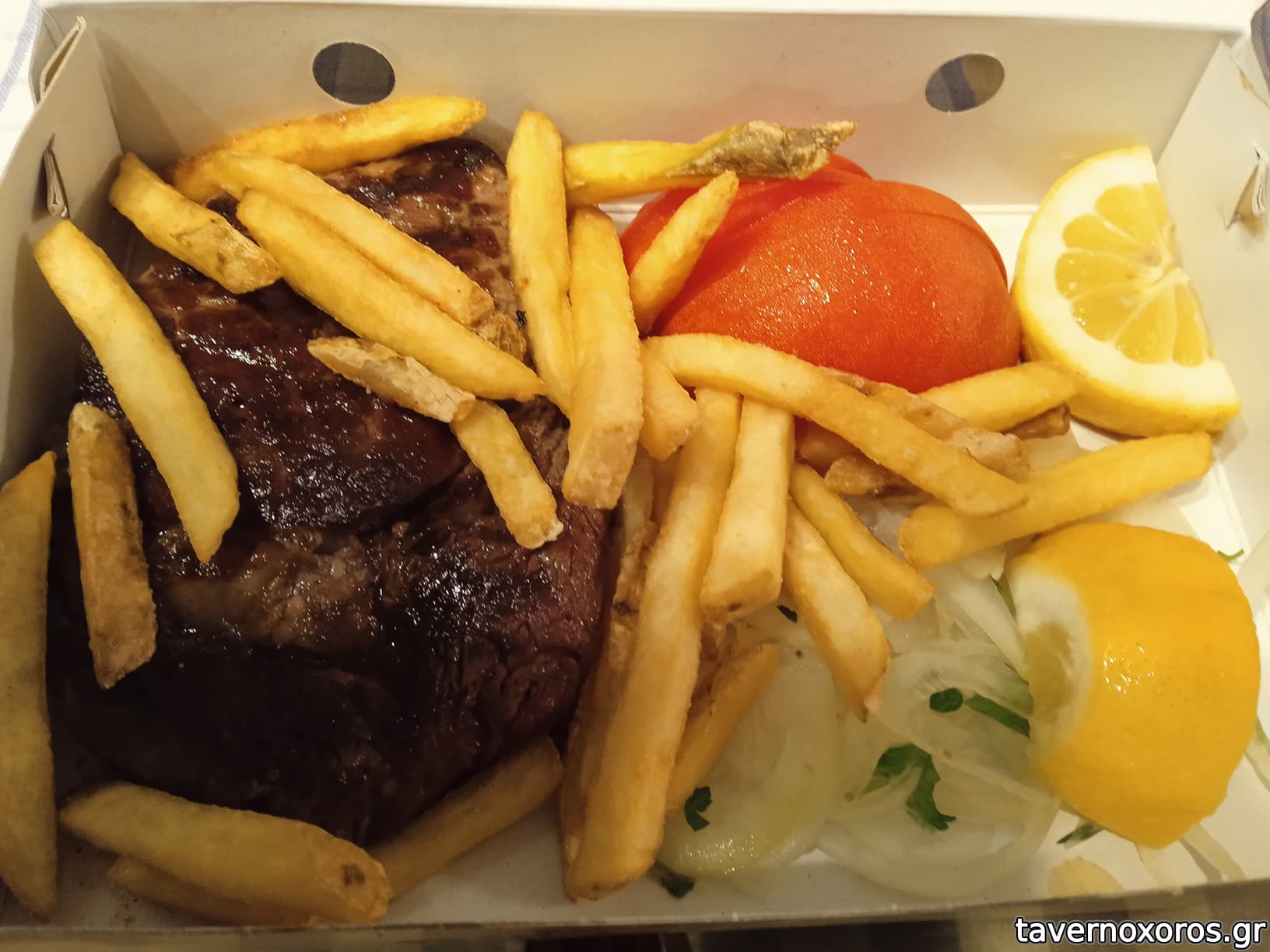 Εκαιγε και το κρεας και οι πατατες. Πιο φρεσκοψημενο δεν γινοταν.
