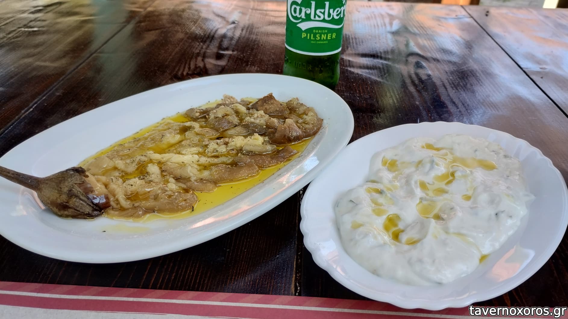 Αριστερά μελιτζάνα ψητή και δεξιά τζατζίκι εμπορίου (απλώς οκ)