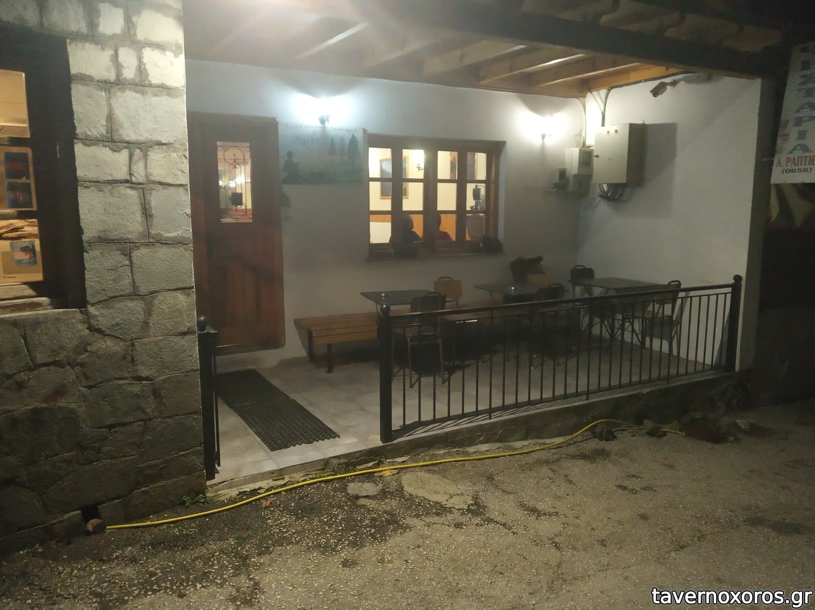 Η βεράντα με τραπέζια στο ποτάμι