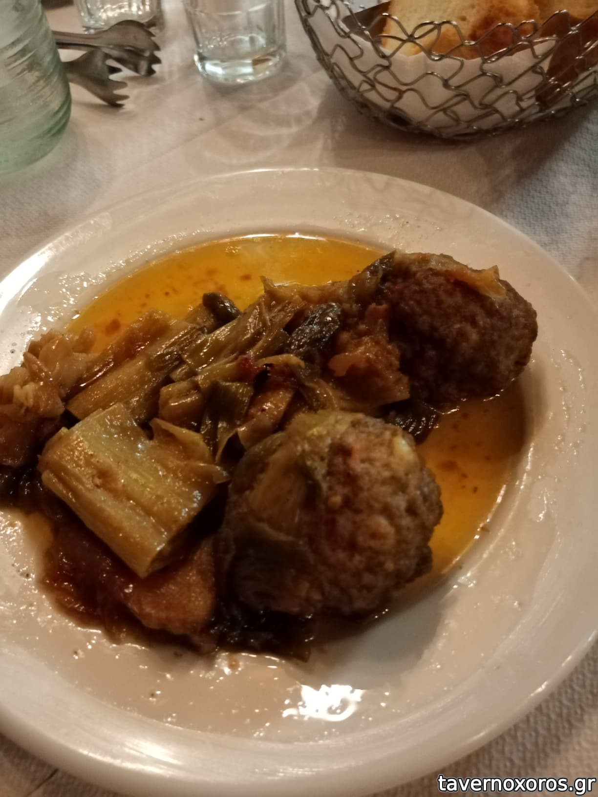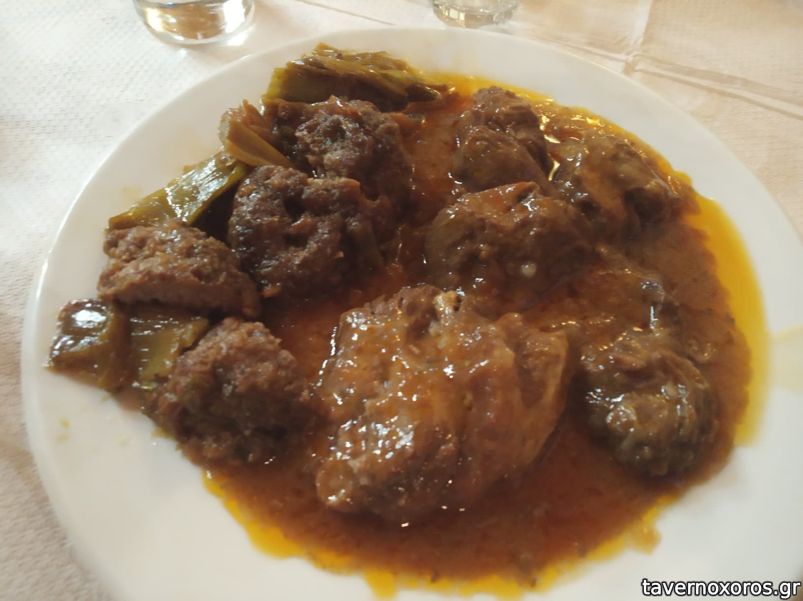 Μεζές τσίπουρου: κεφτέδες πράσο σπασμένοι και αγριογούρουνο κοκκινιστό (καλός)