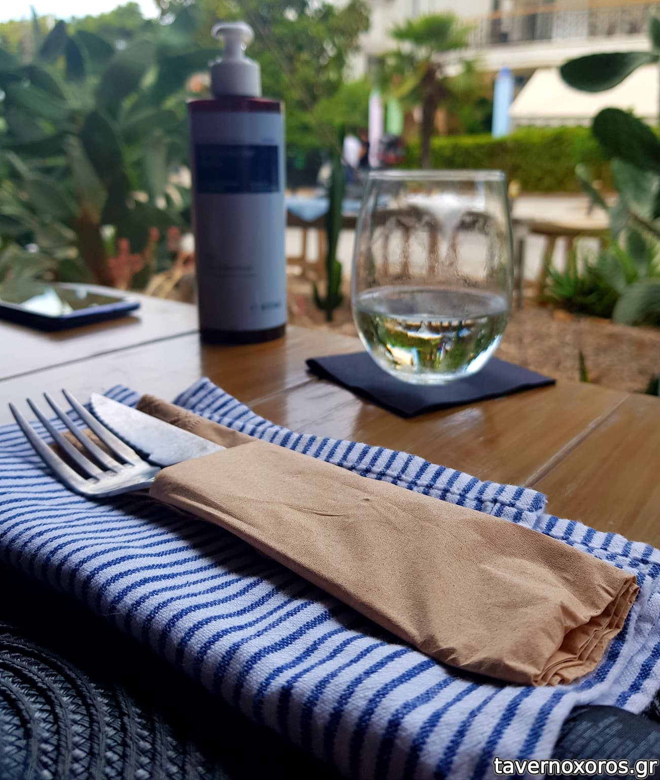 Κουβέρ (ατομικά τυλιγμένα μαχαιροπίρουνα, υφασμάτινη πετσέτα φαγητού, dine-in, Ιούνιος 2021)