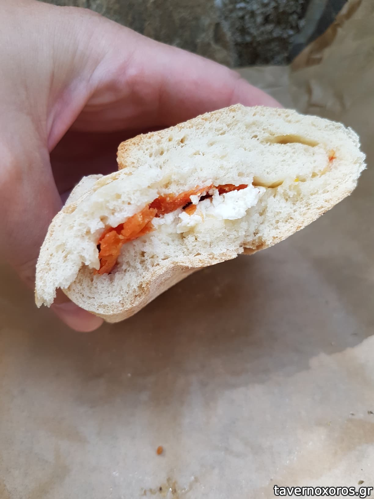 "Μπριός με φέτα ντομάτα και σκόρδο" (ok, μαλακό, φτωχή γέμιση)