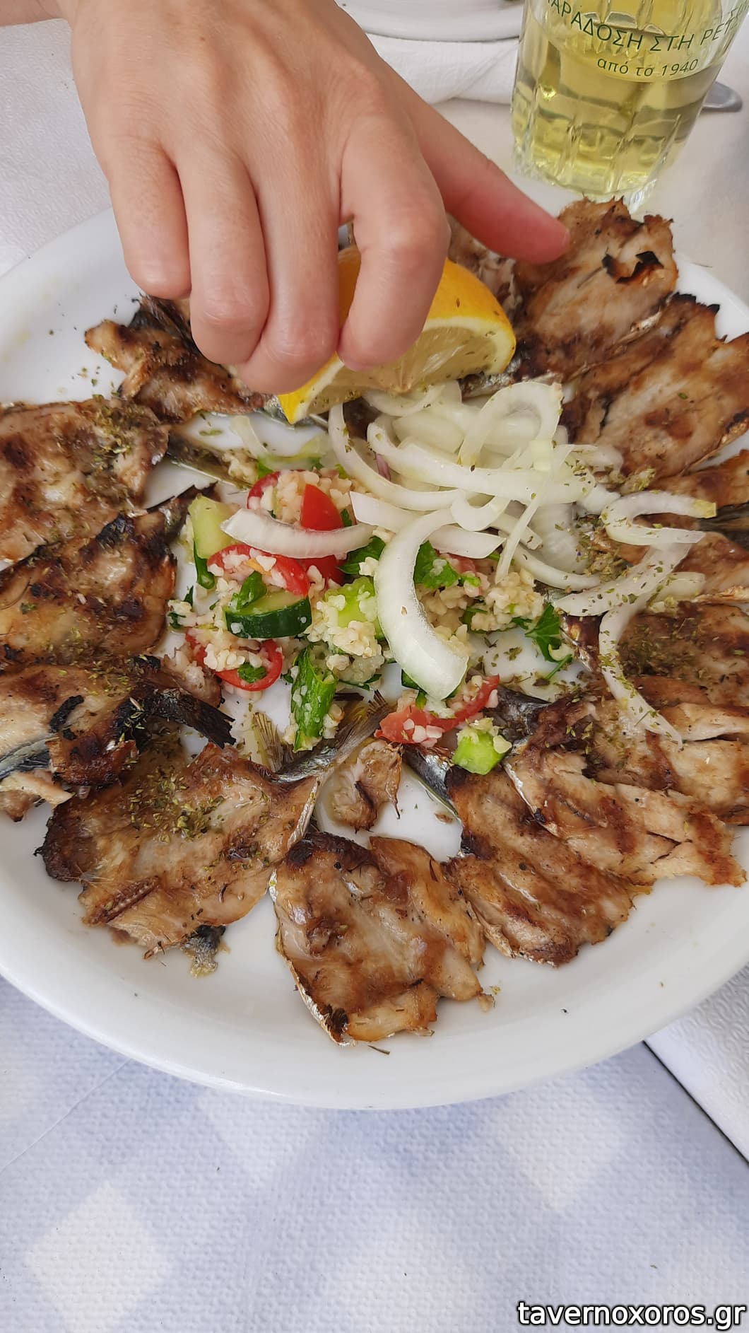 Οπότε και εδώ, Κυριακή μεσημέρι αρχές Απριλίου, με ήλιο και κόσμο να έχει βγει να τον χαρεί, γινόταν χαμός όπου κι αν έβλεπες γύρω. Προσεκτική παραγγελία παρέα με παιδιά (δείτε φωτό). Οι Σαρδέλες σχάρα, αν και όμορφο πιάτο, ήταν λύσσα στο αλάτι (τουλάχιστον για μένα- κάποιοι τις παρέας τις άντεχαν και τις κρατήσαμε). Επίσης σημειωτέον ότι με τον χαμό ήταν μεν ψημένες ανοιχτές, αλλά το κοκαλάκι ήταν το μισό εκεί κι έπρεπε να το βγάλεις. Τσίπουρο-χωρίς καλό, χωρίς παρενέργειες. Σέρβις έτρεχε πάνω- κάτω και δεν τα κατάφερνε. Με πολλή υπομονή όλα οκ.