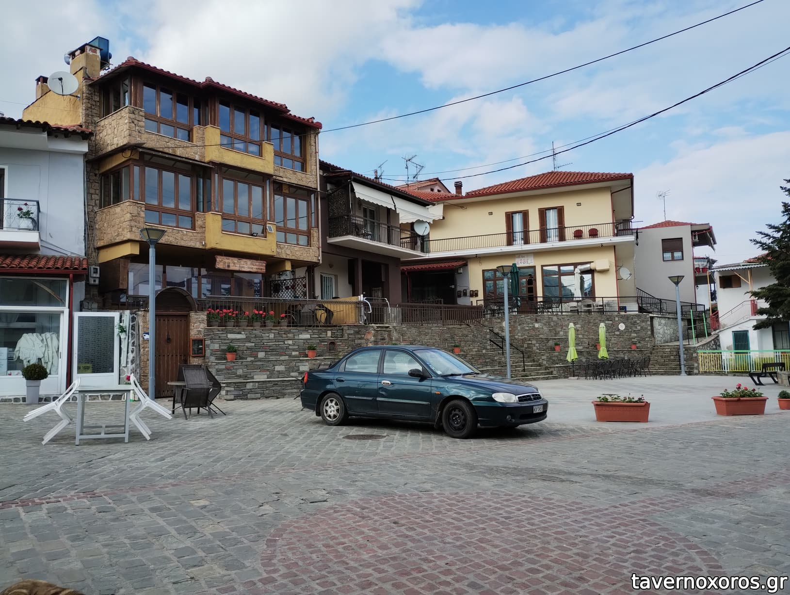 Το μαγαζί και μπροστά η αμφιθεατρική πλατεία. Απρίλιος 2023