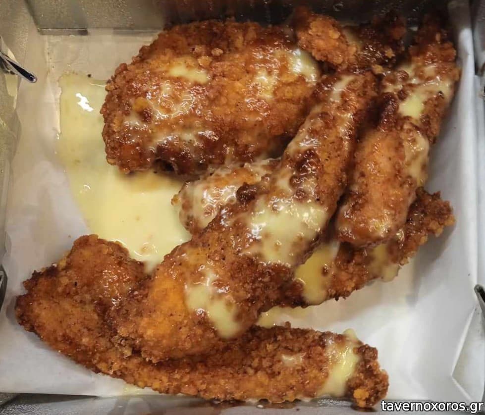Νοέμβριος 2023, παραγγελία ντελίβερι, πήραμε μία μερίδα «χειροποίητες κοτομπουκιές με εξαιρετικό πανάρισμα, που συνοδεύονται από σως μουστάρδας μελιού» με 5,