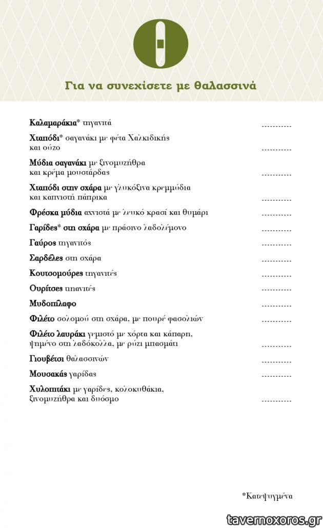 Αρκετά μεγάλος κατάλογος τόσο σε θαλασσινές επιλογές, όσο και σε κρεατικά, προτιμήσαμε τα πρώτα.