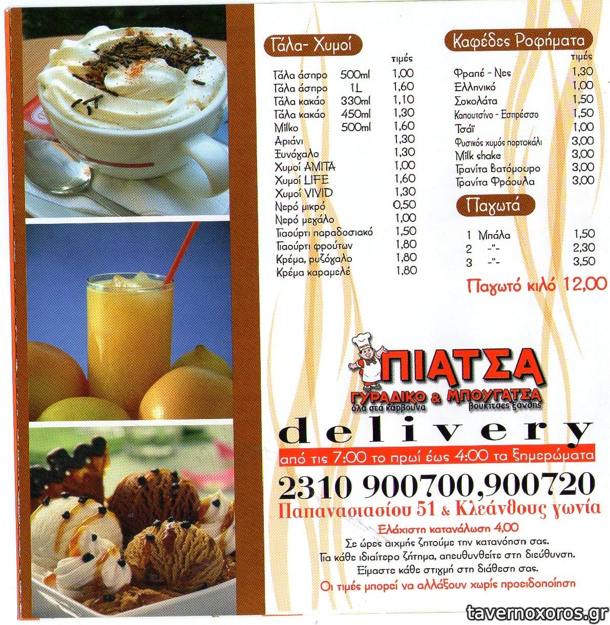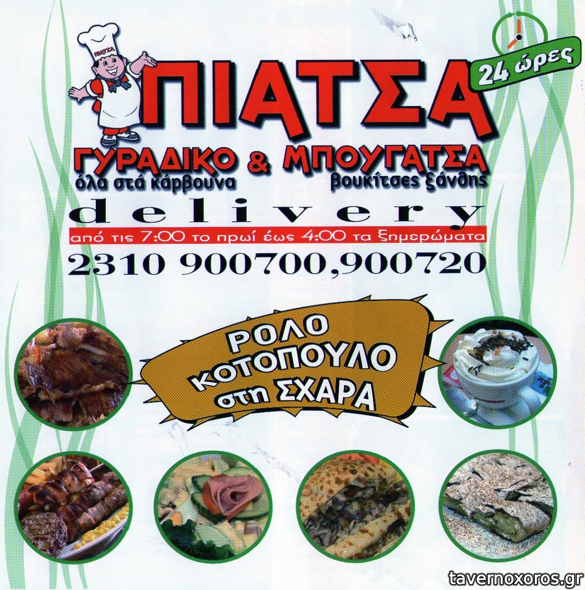 Μισό γυράδικο με επιγραφή "Γυράδικο - όλα στα κάρβουνα" και μισό μπουγατσατζίδικο με επιγραφή "Μπουγάτσα - βουκίτσες Ξάνθης" (υπήρχε και μαγαζί στην Πυλαία με την επωνυμία Βουκίτσες Ξάνθης). Έχει αρκετά τραπεζάκια έξω, μπροστά στο πρόσφατα ανακαινισμένο πάρκο (2009).