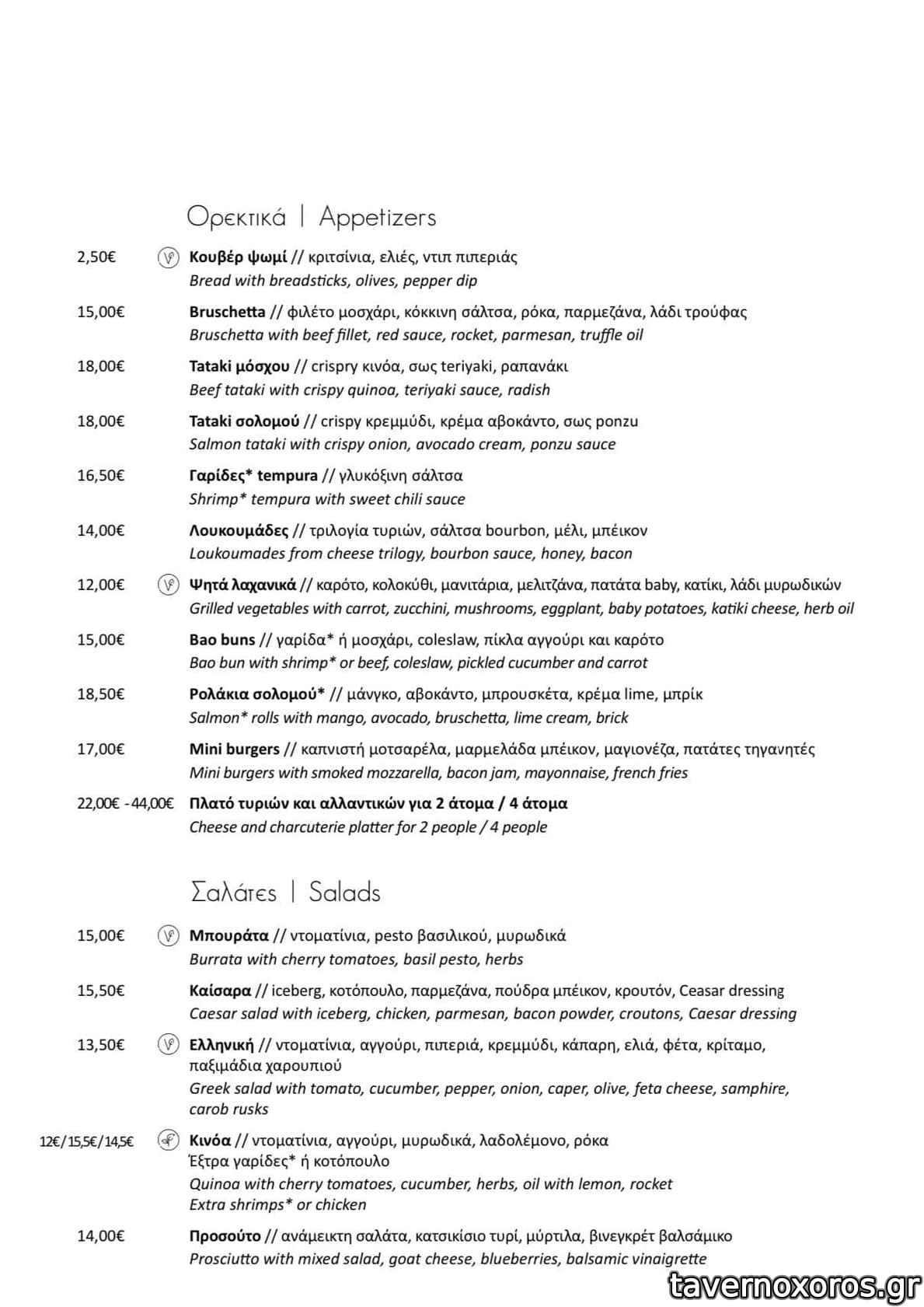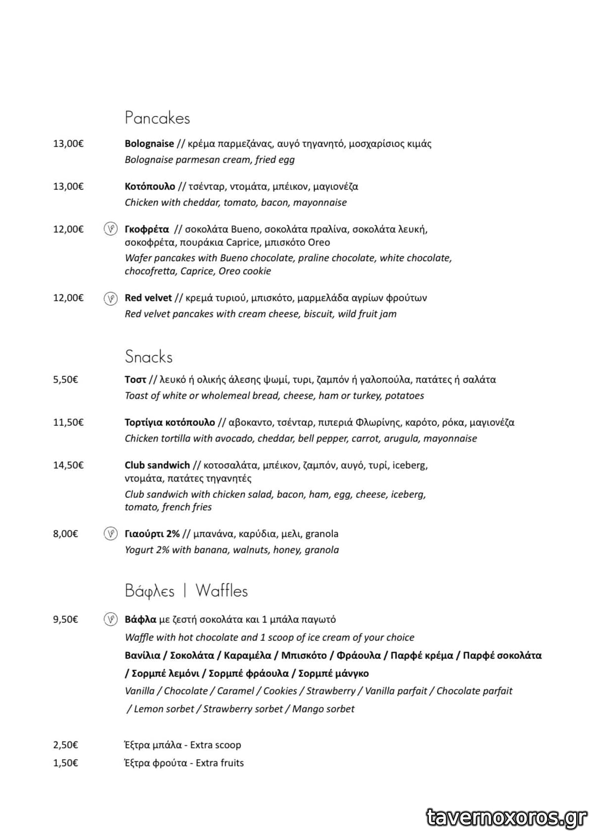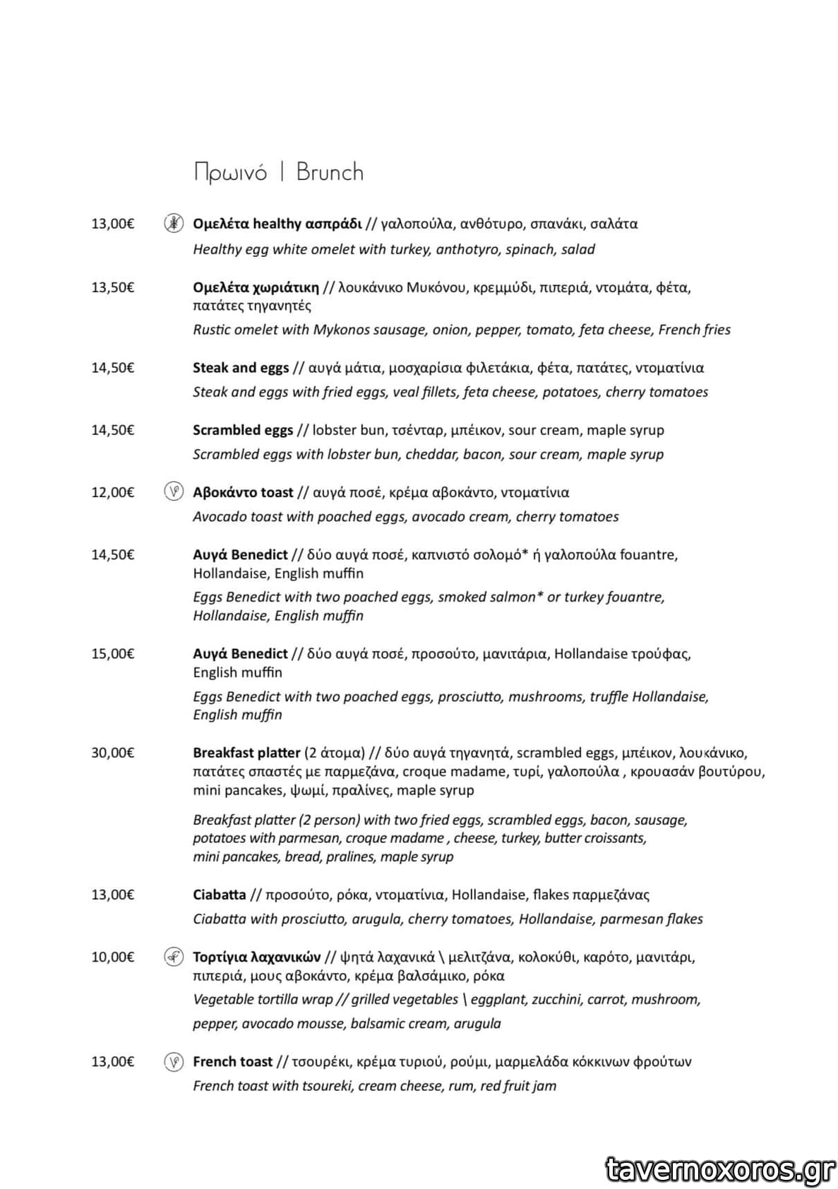 | Λέξεις κλειδιά | Μπαρόν, #cafe, #brunch, #εξωτερική θερμάστρα, #πρωινό, #αυγά, #ομελέτα, #τοστ, #σάντουιτς, #κρουασάν, #club sandwich, #pancakes, #βάφλες, #ποικιλία τυριών, #ποικιλία αλλαντικών, #τυροκροκέτες, #bao bun, #γαρίδες, #σολομός, #burgers, #πίτσα, #ζυμαρικά, #μακαρονάδες, #νιόκι, #ριζότο, #μπιφτέκι, #κοτόπουλο, #σουβλάκι, #steaks, #προφιτερόλ, #μηλόπιτα |