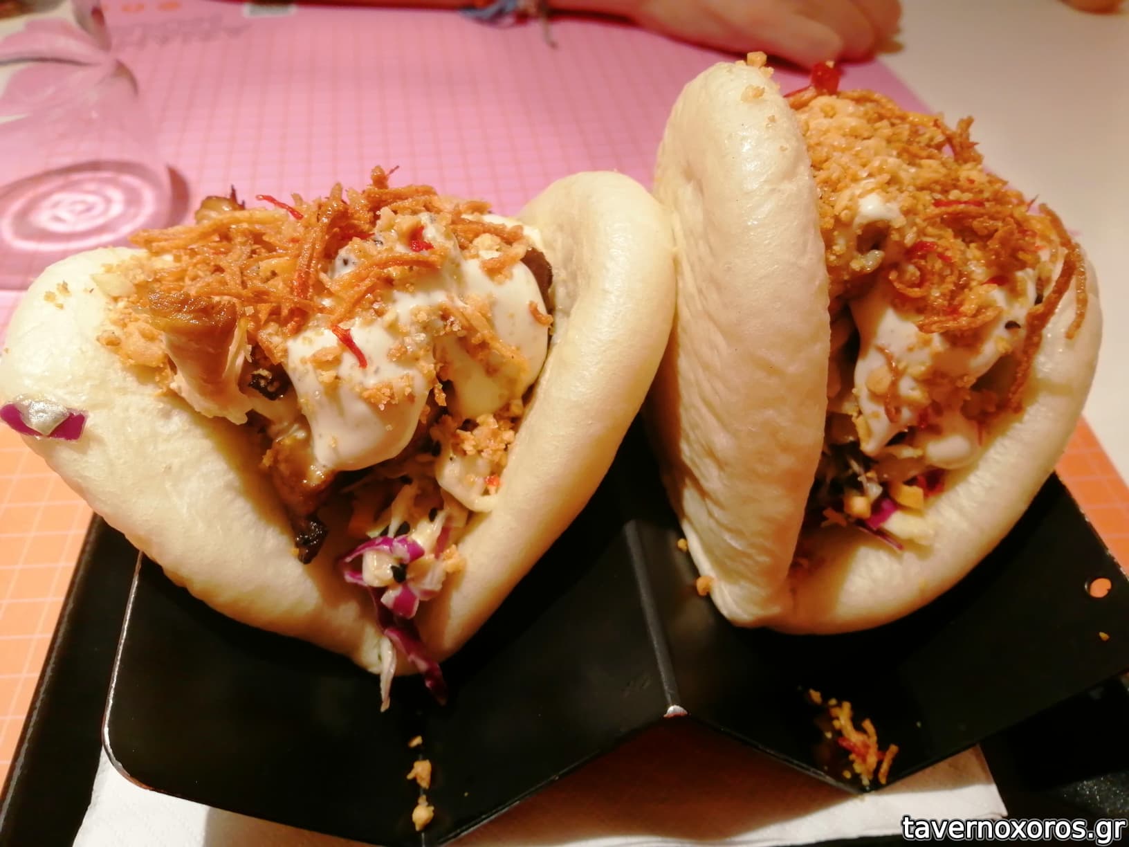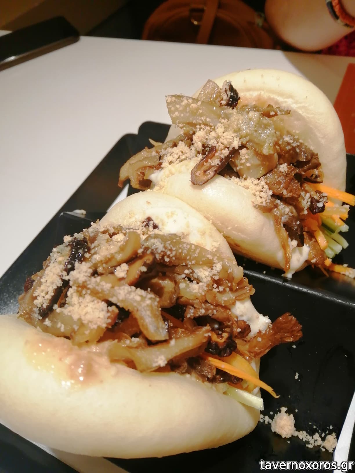 Bao bun χορταστικά, αλλά είχαν κρυσταλλική ζάχαρη στη σως που έκανε κρατς-κρατς..