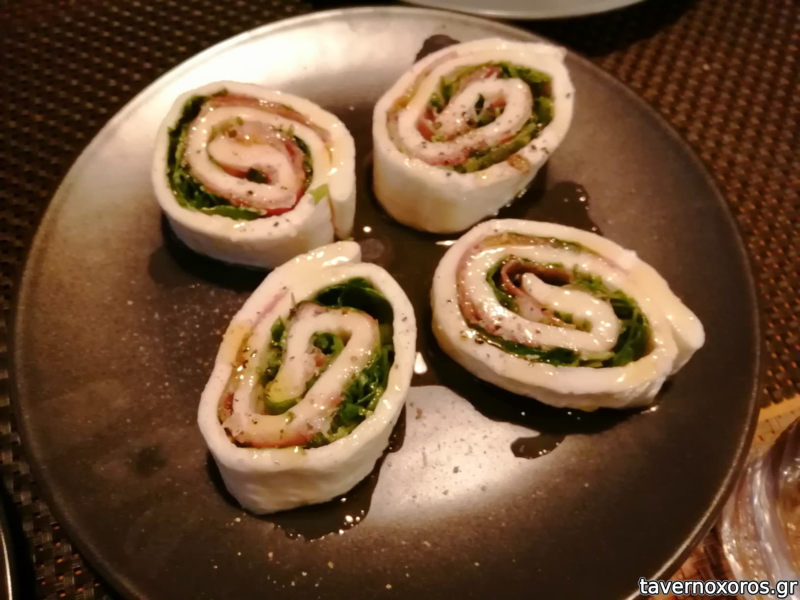 Κρασί Ροζέ φιάλη, οκ. Στο τέλος γλυκό Cannoli και επίσης Τιραμισού.
