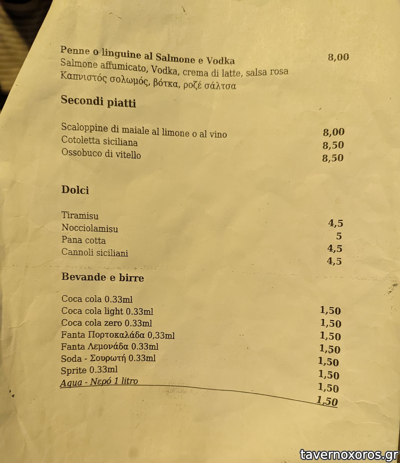 4 ζυμαρικά, 1 καπρέζε, 1 φιάλη κόκκινο κρασί (όχι και τόσο καλό, αλλά στα 16 ευρώ εκεί παίζεις οπότε τίμιο) και 1 αναψυκτικό από τα ιταλικά τα περίεργα, φέραν το σύνολο στα 60 ευρώ.