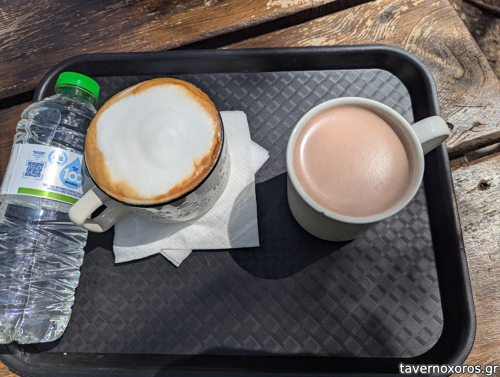 Καπουτσίνο (μια χαρά) & Σοκολάτα ζεστή (not my style, άρεσε στα μικρά)