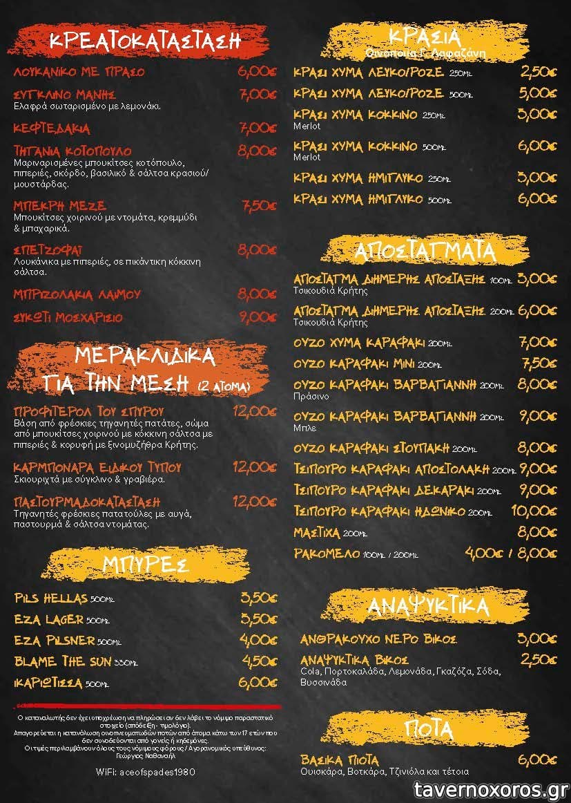 | Ωράριο | Δε-Πε 19:00-02:00, Πα-Σα 19:00-03:00, Κυ 13:00-22:00 |