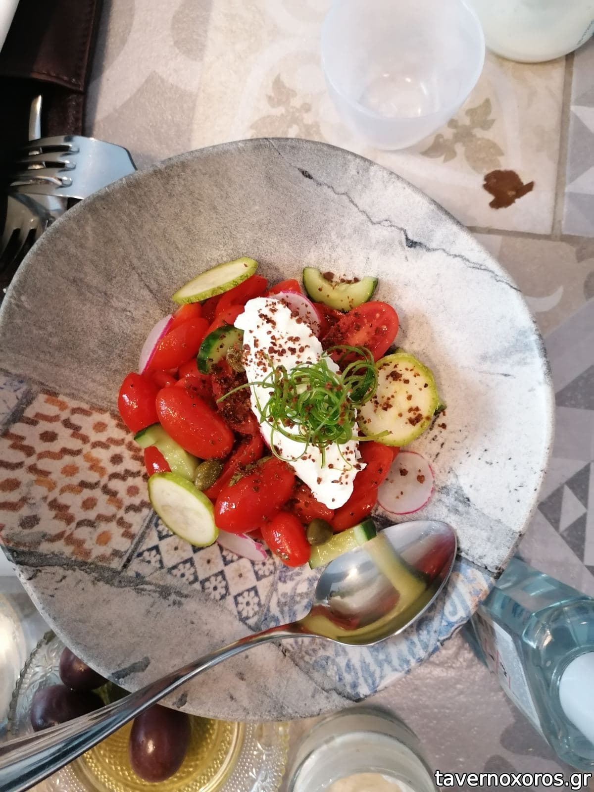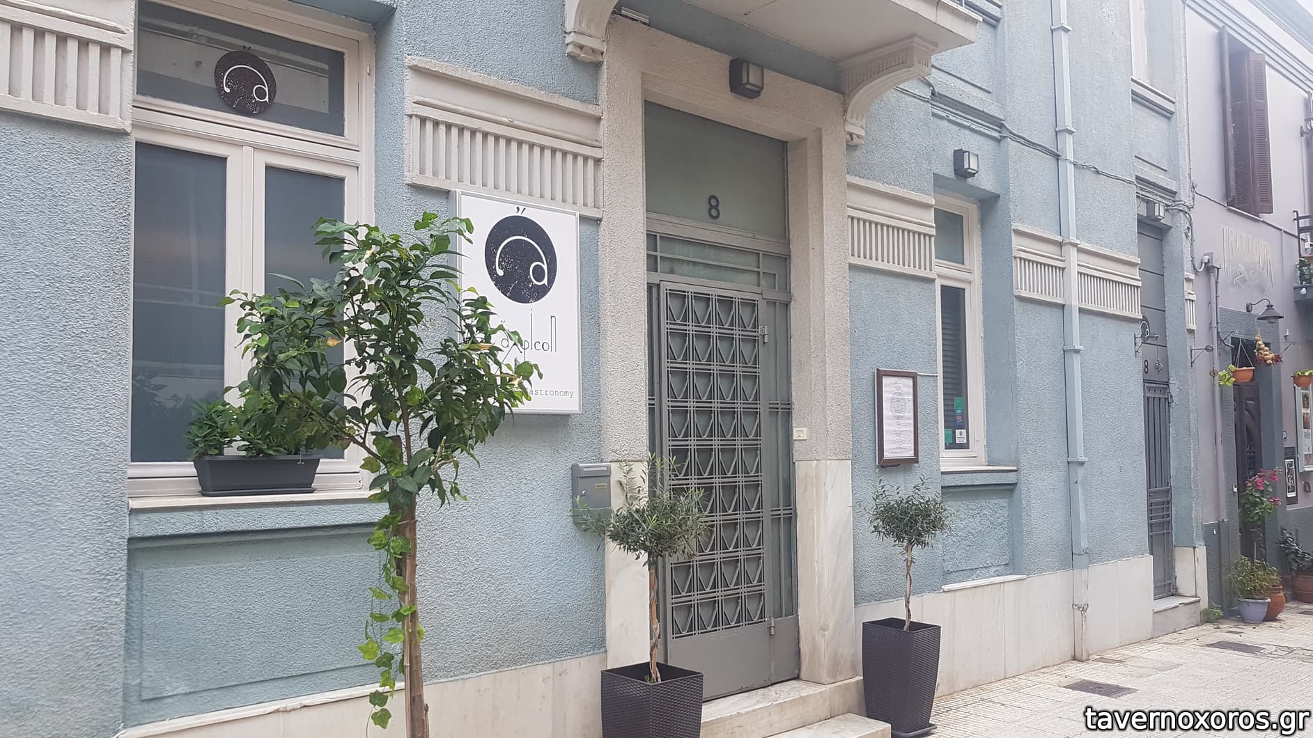 Το είχα σταμπάρει εδώ και καιρό το ανακαινισμένο νεοκλασσικό στον πεζόδρομο, αλλά πήγαμε πρώτη φορά σήμερα. Καθίσαμε έξω όπου είχε αρκετό ήλιο, προστατευμένοι από ομπρέλα. (Μέσα το περιβάλλον μας άρεσε πάρα πολύ, αλλά και έξω είναι ένας συμπαθητικός ήσυχος πεζόδρομος με παλιά σπίτια.)