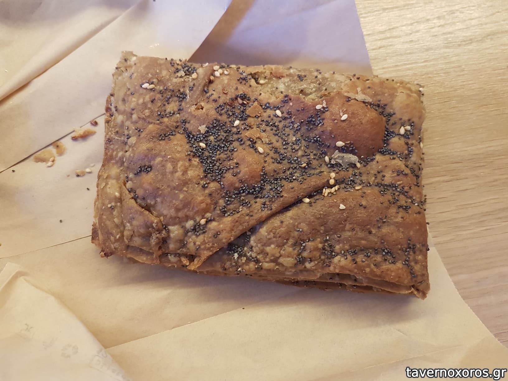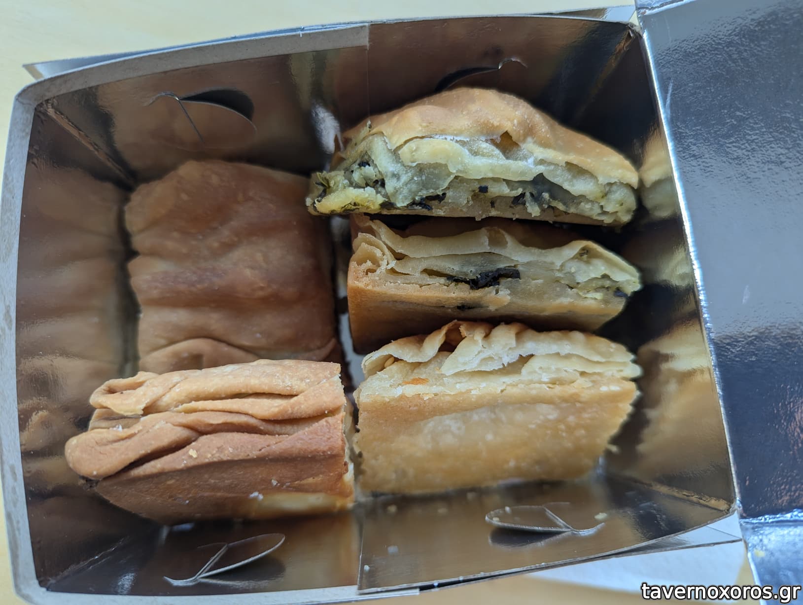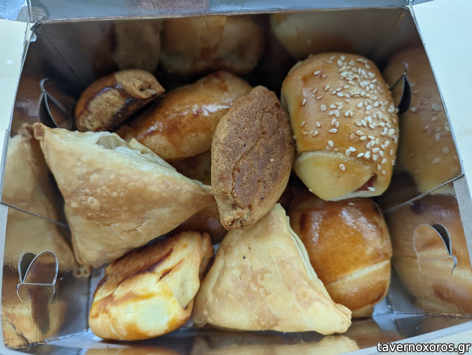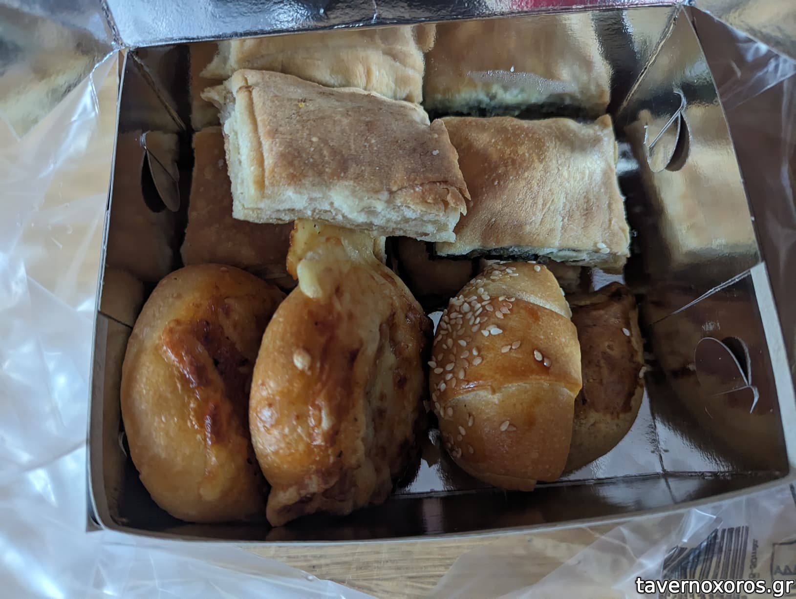 Μετριο ψωμι. Καλο που στο κοβει φετες αν θελεις. Τυροπιτακια πεταχτηκαν διότι και τα 2 ειδη που πηρα απο την κατω μερια ειχαν μεταλικά ρινίσματα στο φυλλο, κατι που εχω παρατηρησει και σε καποια αλλα ζαχαροπλαστεια/φουρνους με τις πιτες τους. προφανως προκειται για μεταλικα ρινισματα απο τα μεταλικα ταψιά τους. Αυτο ομως θαπρεπε να το ειχαν δει και να το τακτοποιησουν.