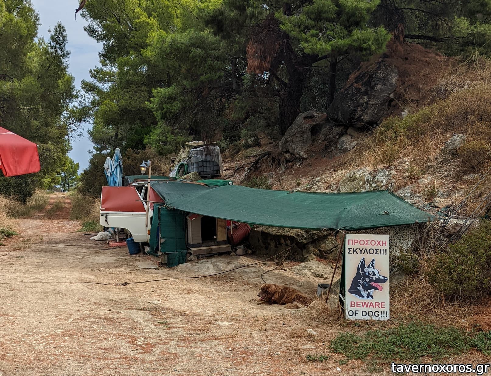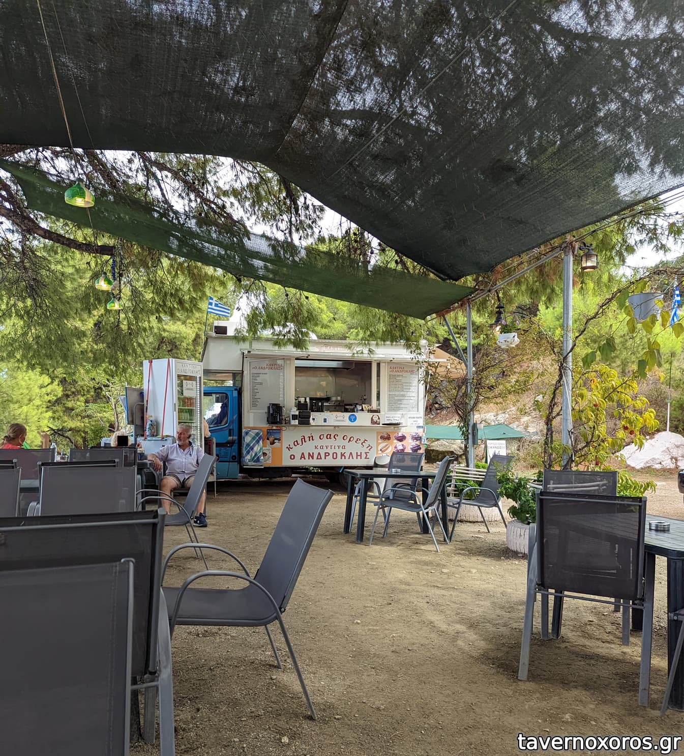Όσα είπαν οι συναγωνιστές ισχύουν: τέλεια θέα, σουπερ περιβάλλον σε σκιά πεύκων. Ο κύριος Ανδροκλής πρόθυμος και ευγενικός.