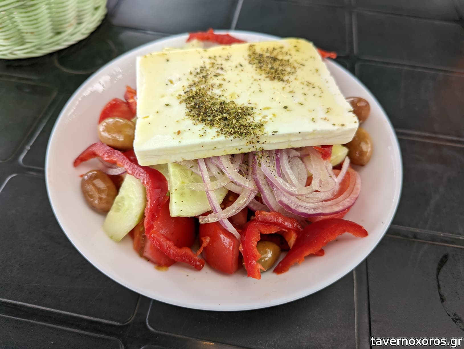 Το φαγητό του σίγουρα δεν είναι σπουδαίο, αλλά διαχειρίζεται σωστά τις προσδοκίες του πελάτη: μερίδα πανσέτα και μερίδα σουβλάκια αποδεκτά. Πατάτες προκάτ, αλοιφές επίσης (αλλά καλές), κρέας νόστιμο αλλά όχι ΑΑ (απλώς Α ή και Β είναι αποδεκτό για καντίνα από ’μένα). Η χωριάτική του ωραία· η ντομάτα μ’ενθουσίασε και τον ρώτησα από που τις παίρνει. Πολύ τίμια μου λέει ότι μια του βγαίνουν καλές, μια όχι.