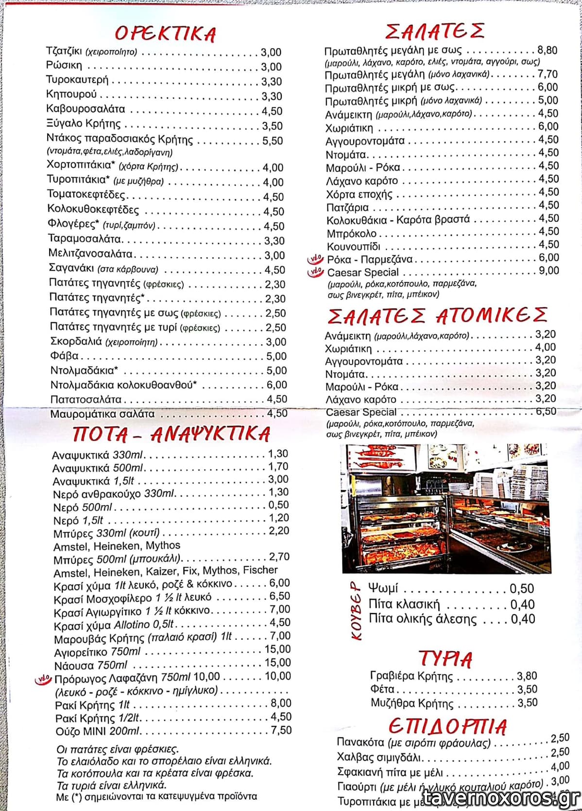| Λέξεις κλειδιά | #πατσάς, #σούβλες, #γίδα βραστή, #μουσακάς, #παστίτσιο, #φασόλια γίγαντες, #μπάμιες, #σουτζουκάκια σμυρνέικα, #ομελέτα, #κόκορας κρασάτος, #αρνάκι στο φούρνο, #φρικασέ, #τσιγαριαστό, #λεμονάτο, #κουνέλι στιφάδο, #συκωταριά, #σαλιγκάρια, #γαρδουμπάκια, #γαύρος, #σαρδέλα, #μαριδάκι, #σουπιά κρασάτη, #χταπόδι, #γαρίδες, #καβουροσαλάτα, #ξύγαλο, #κολοκυθοκεφτέδες, #ντοματοκεφτέδες, #ντολμαδάκια, #κλέφτικο, #κεφαλάκια, #γουρουνόπουλο, #απάκι, #παϊδάκια |
