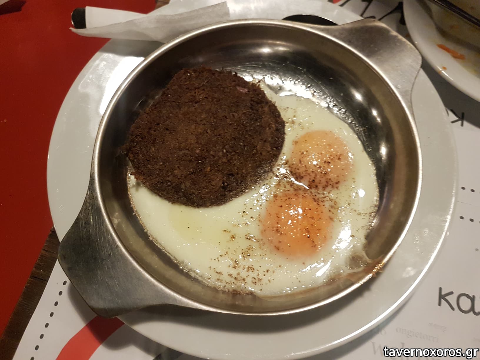 "Καβουρμάς μοσχαρίσιος Δράμας με 2 αυγά μάτια" (πολύ καλός καβουρμάς)