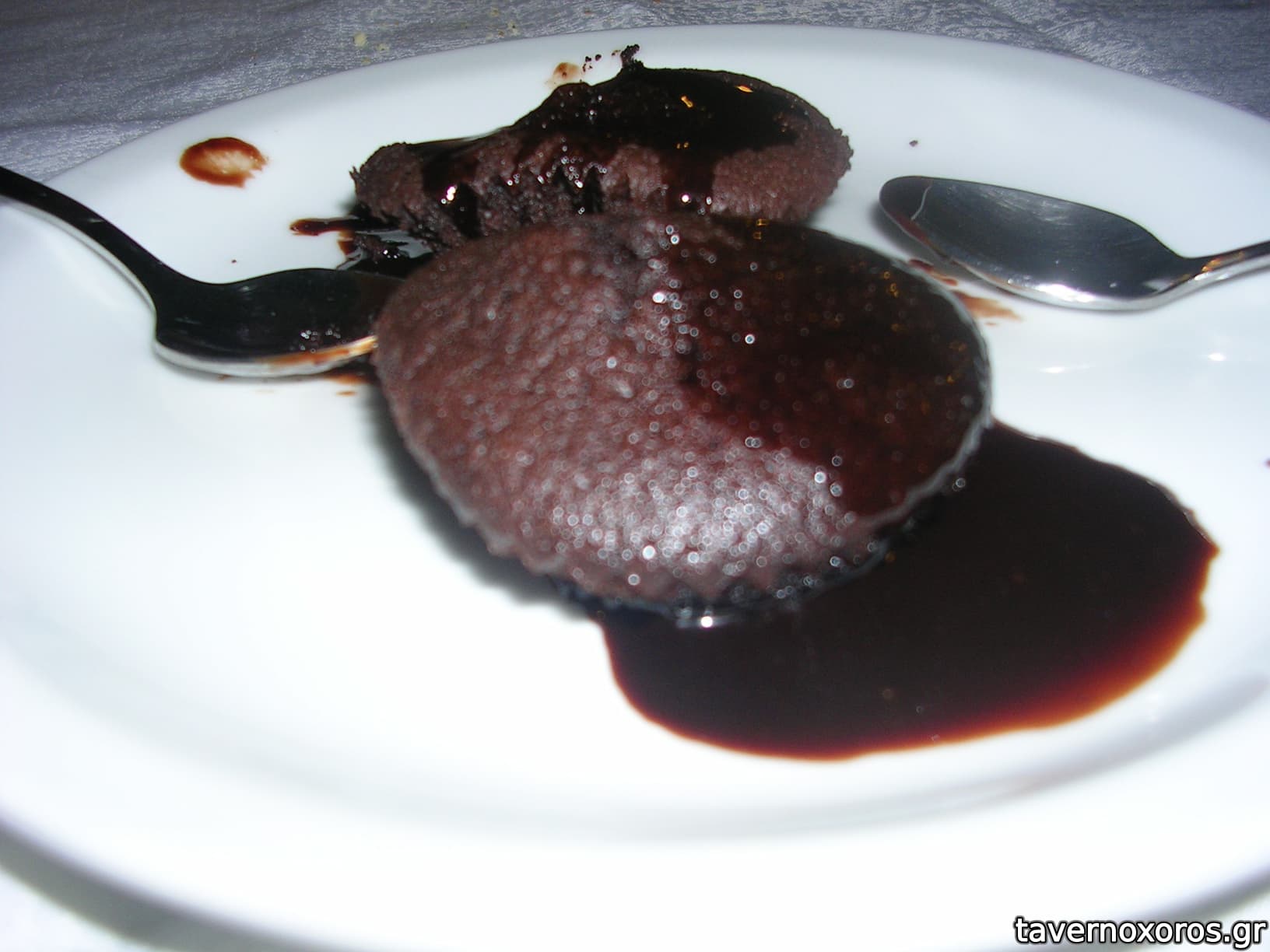 Κερασμένο γλυκό, συσκευασμένο κεϊκάκι που το ζεστάνανε στα μικροκύματα και ρίξανε πάνω σιρόπι σοκολάτας