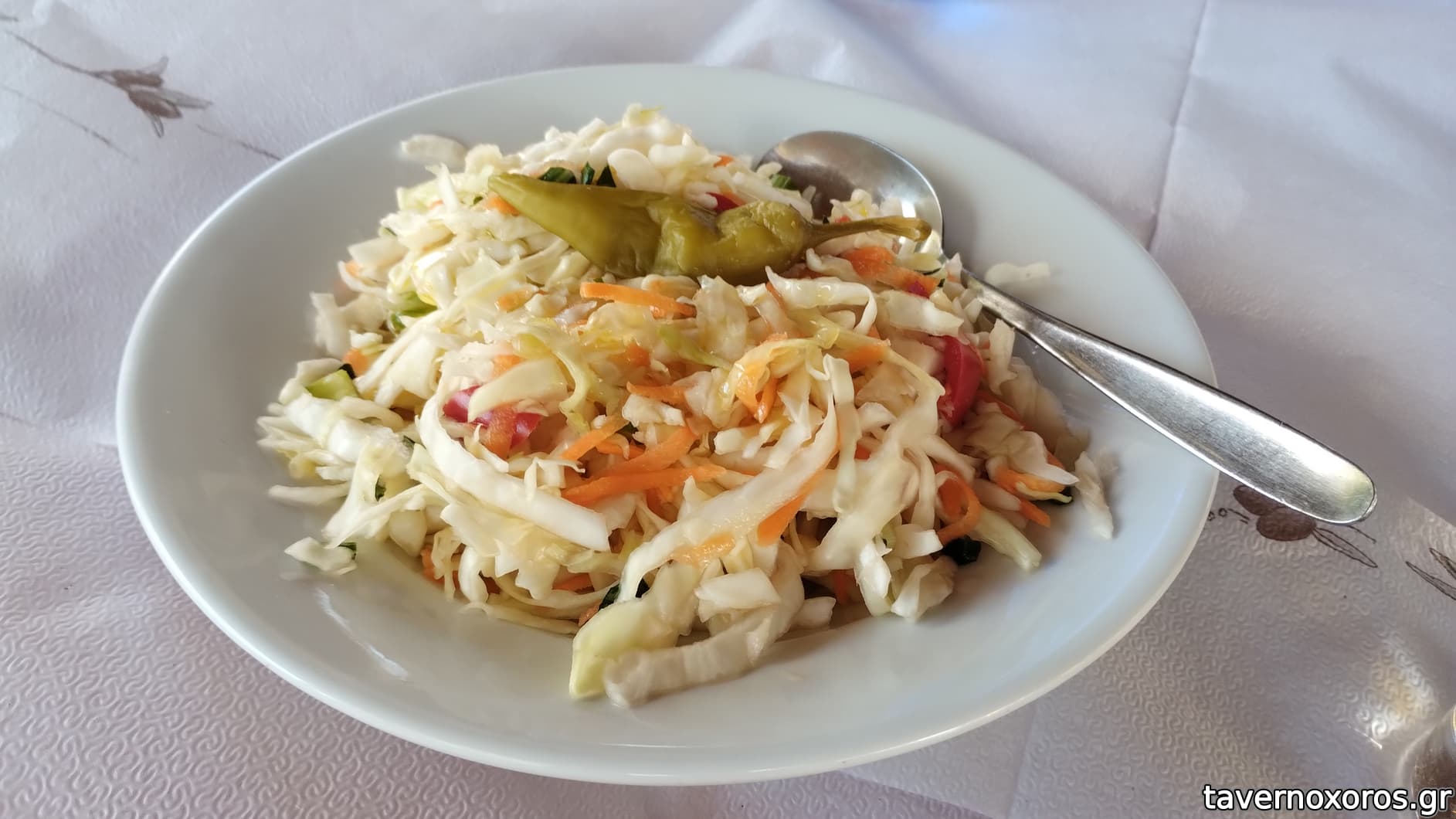 Πολύ καλή μελιτζάνα ψητή καί σαλάτα Τσακμάκη ἀλλά τά χόρτα μέτρια.