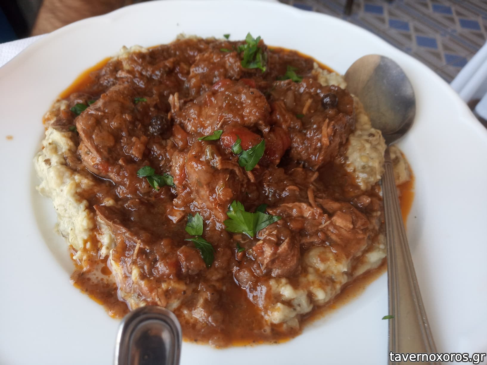 Μοσχαράκι με πουρέ μελιτζάνας (μια χαρά, αλλά 16.5€)