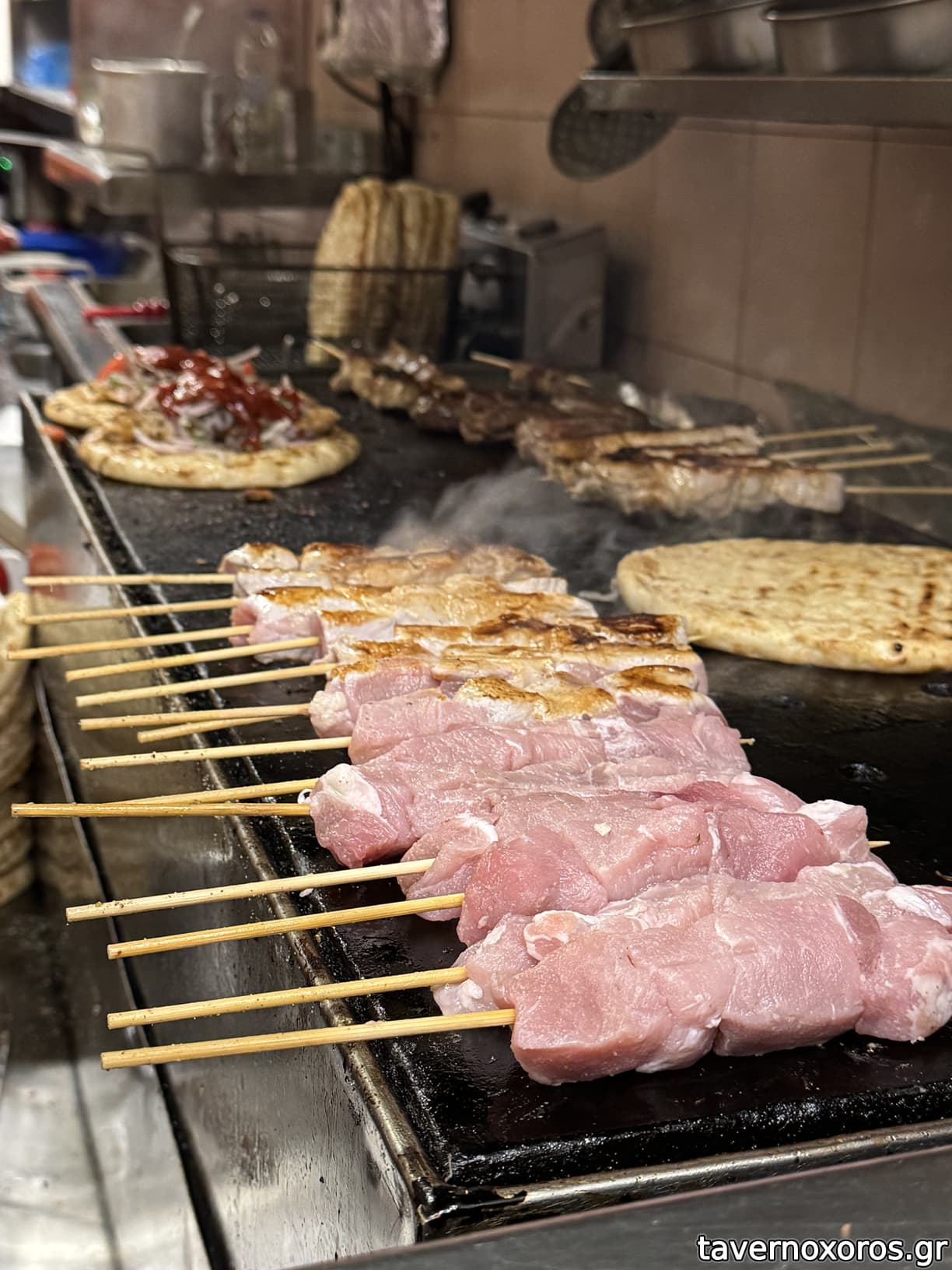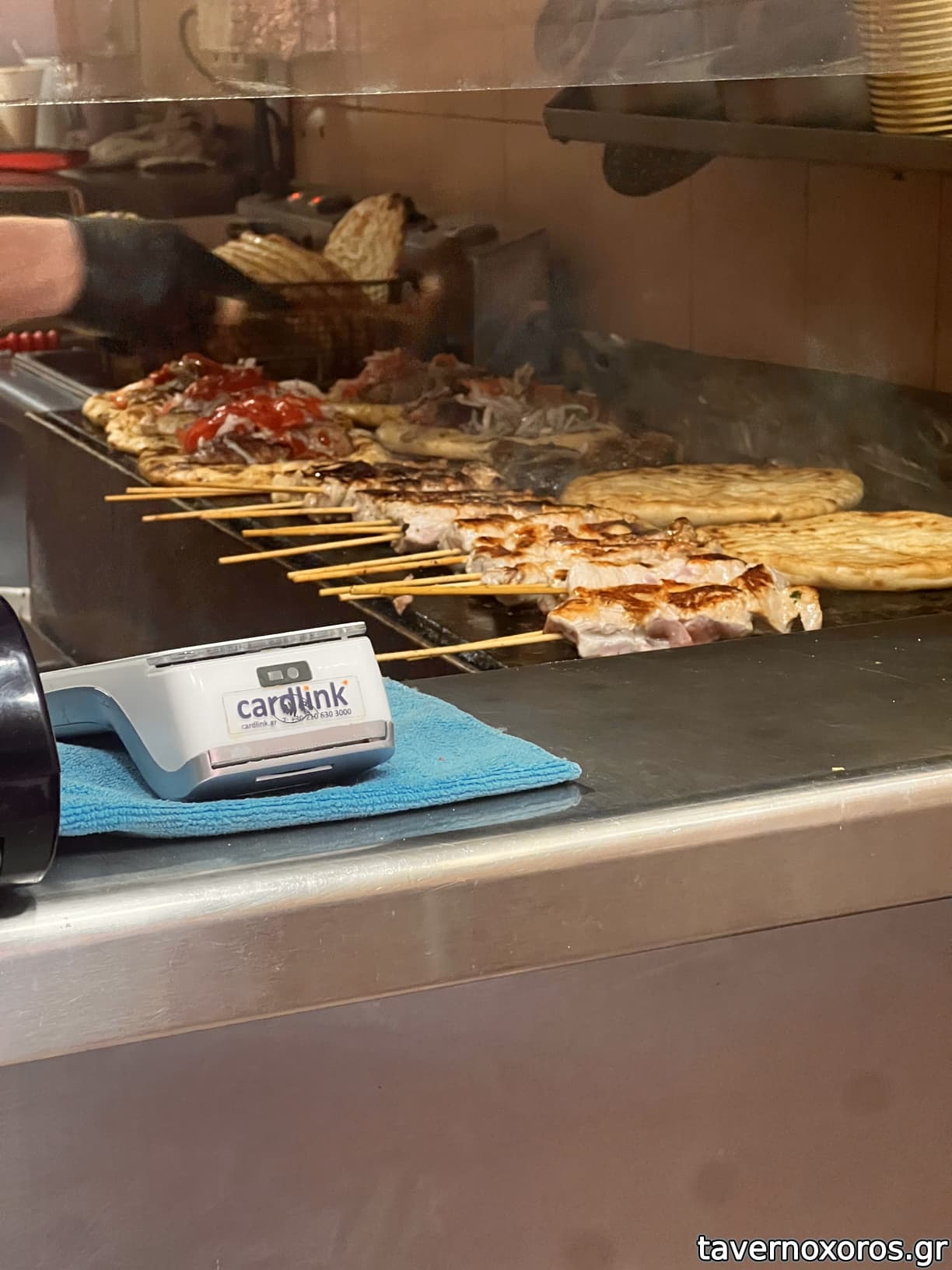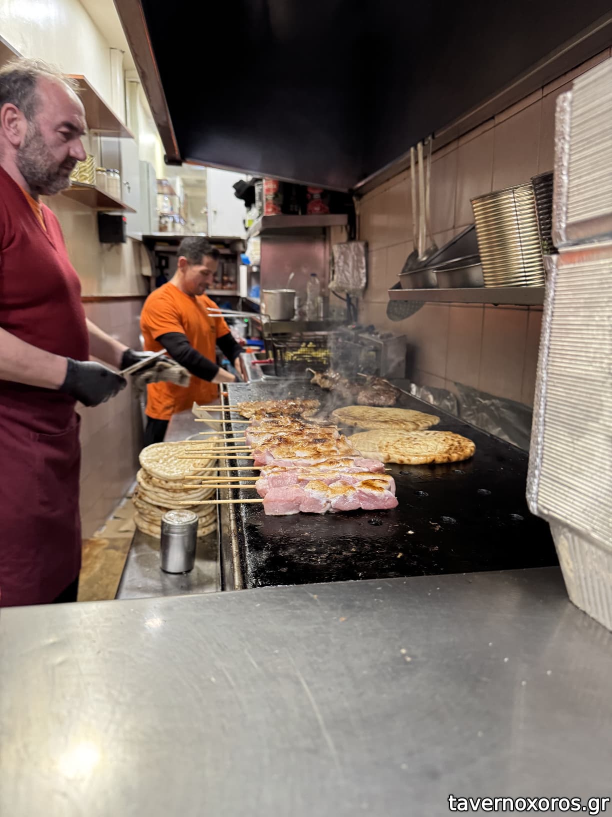 Γραφικη φιγουρα ο κυρ κωστας, που ψηνει, μαλλον μαζι με την γυναικα του που ασχολειται με ταμειο/παραγγελιες.