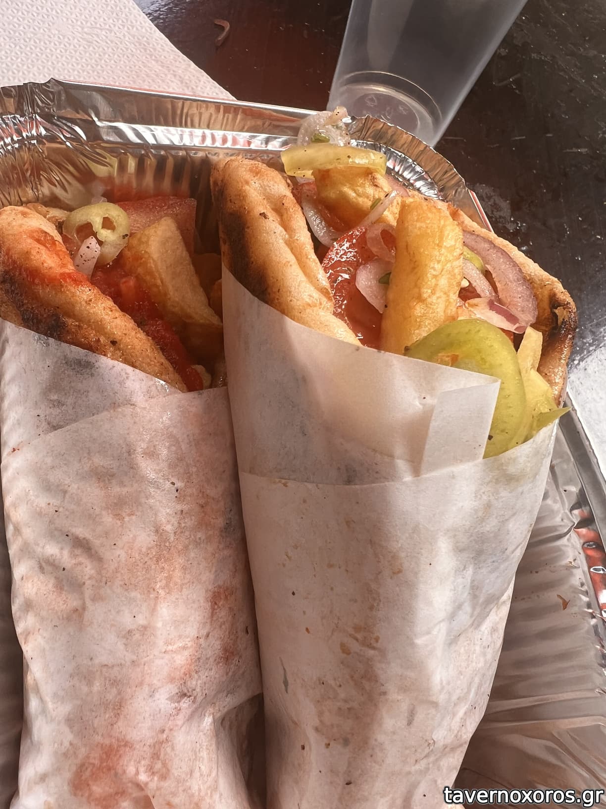 Δυο τυλιχτά (ένα με σουβλάκι και ένα με μπιφτέκι )
