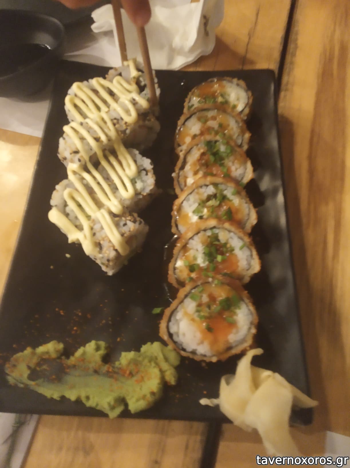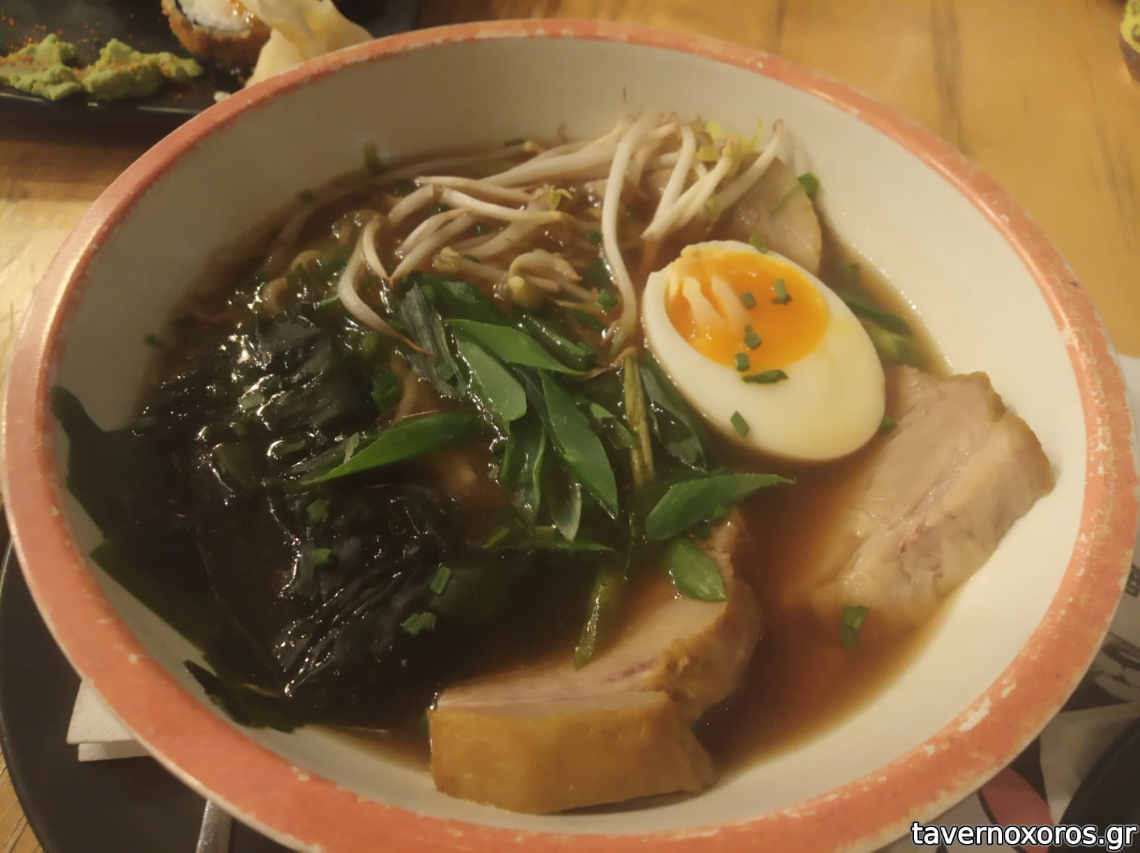 Μάς άρεσε αρκετά, χωρίς να είναι κάτι το πολύ ιδιαίτερο. Maki sushi rolls είχε λίγα είδη, αλλά το sake tempura μάς άρεσε πολύ και το πήραμε ξανά στο take-away. Στην πρώτη επίσκεψη δοκίμασα ένα ramen, αξιοπρεπές (νουντλ πολύ καλό, χοιρινό φετούλα οκ, ζωμός μέτριος). Στο take-away τα ζυμαρικά pad thai ήταν κάπως λάσπη, αλλά μετριοκαλά. Γενικά αργούν να ετοιμάσουν, αλλά όλα γίνονται εκείνη τη στιγμή και το καταλαβαίνεις, γιατί είναι τραγανά.