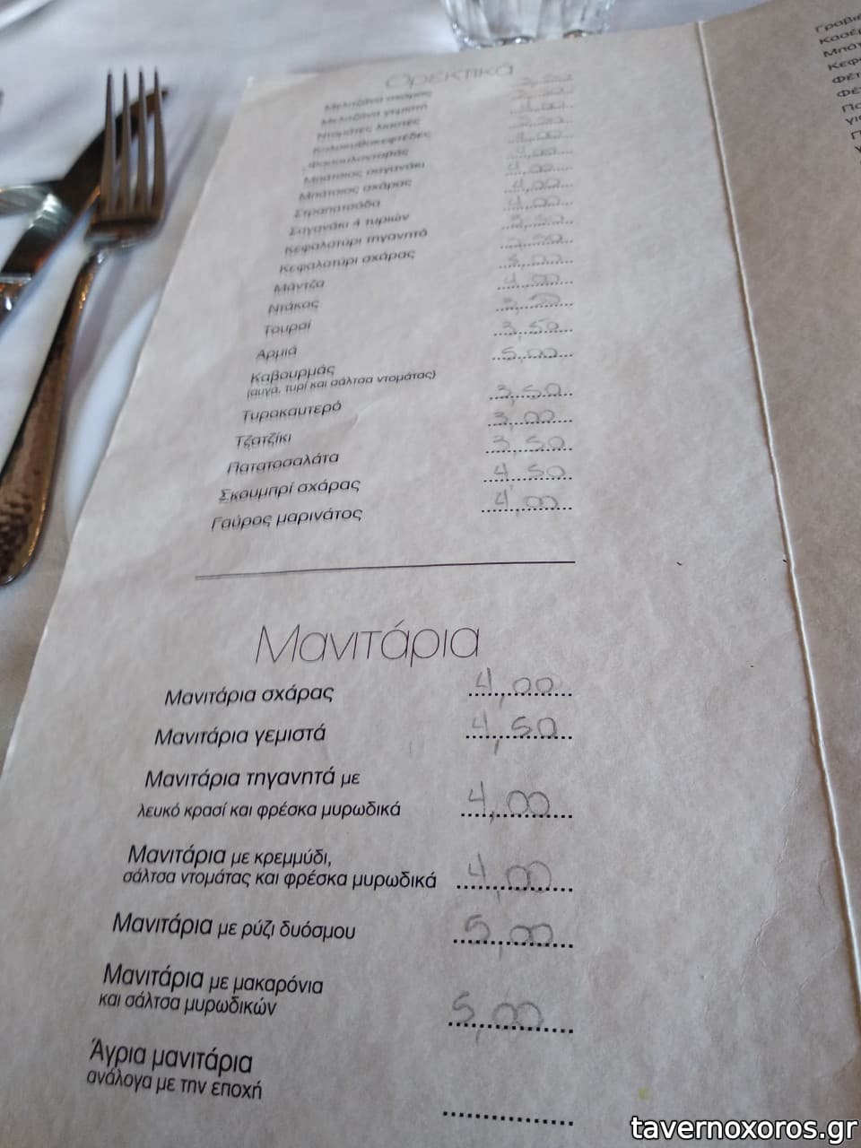 | Λέξεις κλειδιά | #σπεσιαλιτέ μάντζα, #σπεσιαλιτέ γκαβόψαρα, #σπεσιαλιτέ χανούμισσα, #σπεσιαλιτέ μπάτζος, #κολοκυθοκεφτέδες, #ντάκος, #γαύρος μαρινάτος, #ποικιλία τυριών, #κουνέλι, #μανιτάρια, #καβουρμάς, #γκαβόψαρα, #μάντζα, #κότσι, #ρεβύθια, #τηγανιά, #κεφτεδάκια, #σπεντζοφάι, #φασόλια γίγαντες, #αγριογούρουνο, #μπάτζος, #μπιφτέκι, #στραπατσάδα, #σταμνάκι, #τας κεμπάπ, #ζυγούρι, #χανούμισσα, #χοιρινή, #πανσέτα, #κοτόπουλο, #σουτζουκάκια, #χοιρινό ψητό, #μοσχαρίσια μπριζόλα, #μακαρονάδες, #λαχανοντολμάδες, #κολοκυθοανθοί, #συκώτι, #κρασιά |