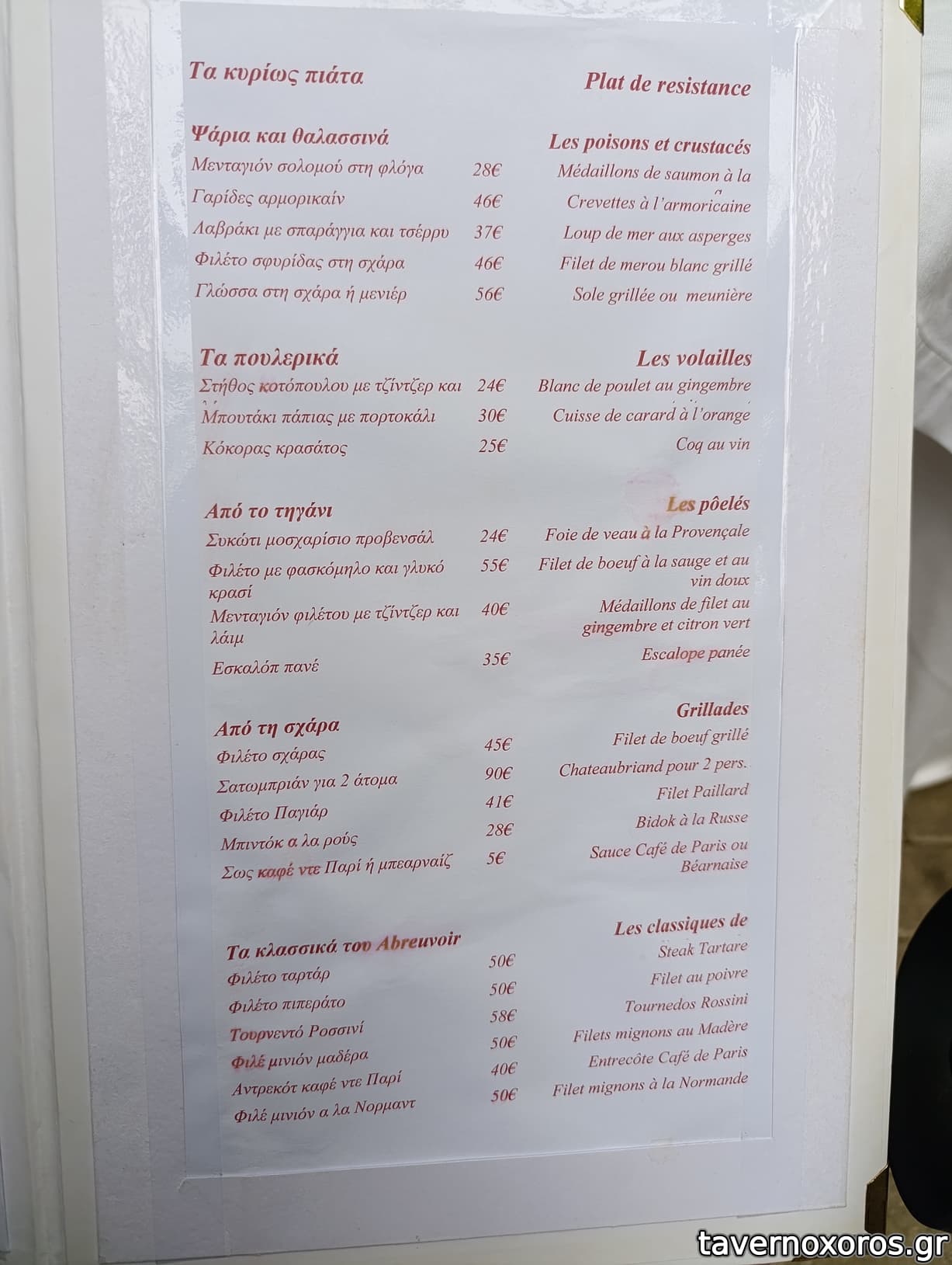 | Λέξεις κλειδιά | Λαμπρεβουάρ, #γαλλικό, #σολομός, #πάπια, #κρεμμυδόσουπα, #βατραχοπόδαρα, #σαλιγκάρια, #γαρίδες, #κοτόπουλο, #κόκορας κρασάτος, #συκώτι, #σνίτσελ, #steaks, #μοσχάρι παγιάρ, #μιλφέιγ |