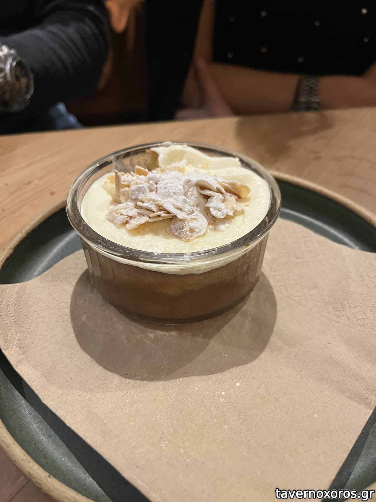 Το μενού περιλαμβάνει τυριά, και λίγα πιάτα που αλλάζουν ανάλογα με την εποχή.