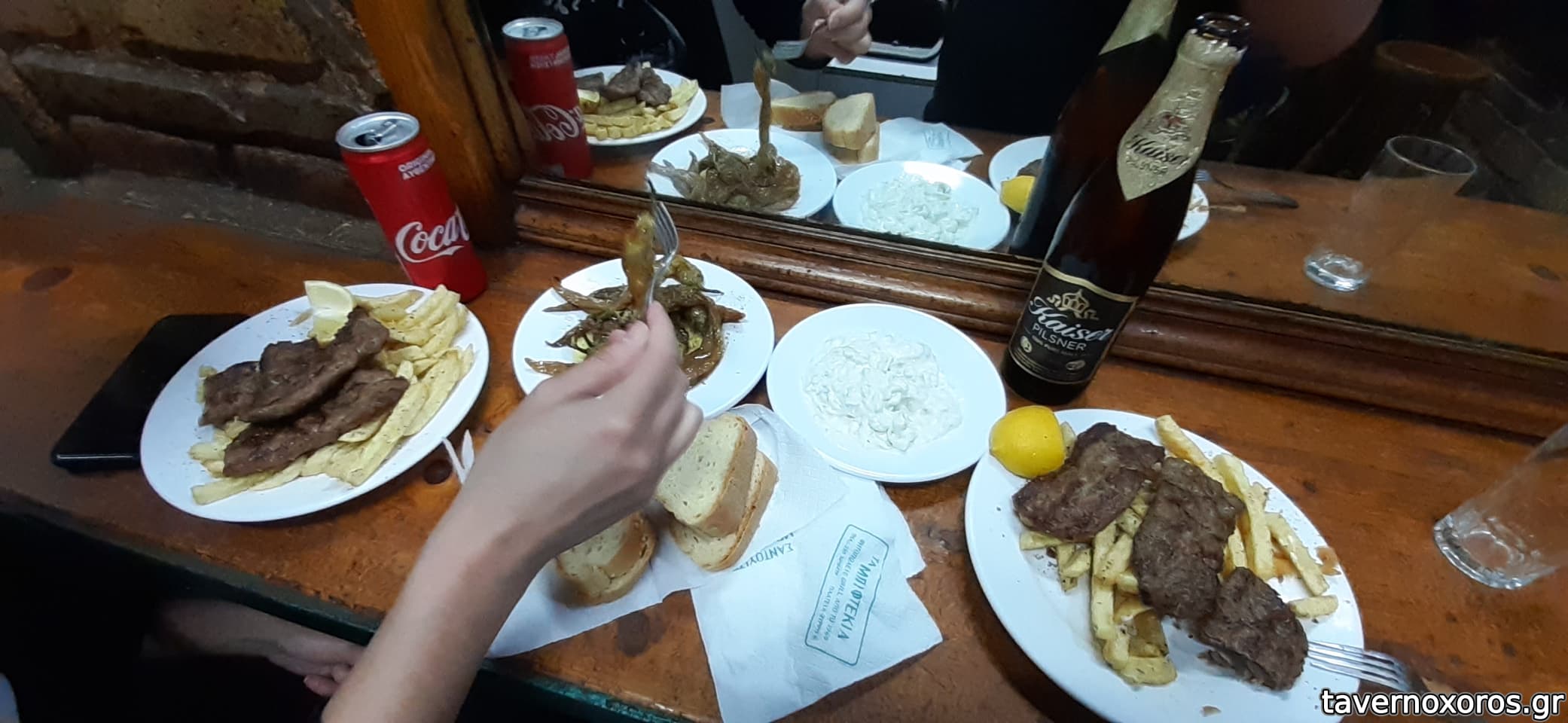2 μεριδες απο 3 μπιφτεκια, μια τζατζικι (ελαφρυ), μια καυτερες πιπεριες, κοκα και καϊζερ, 19 ευρω και φευγεις ευτυχισμενος...