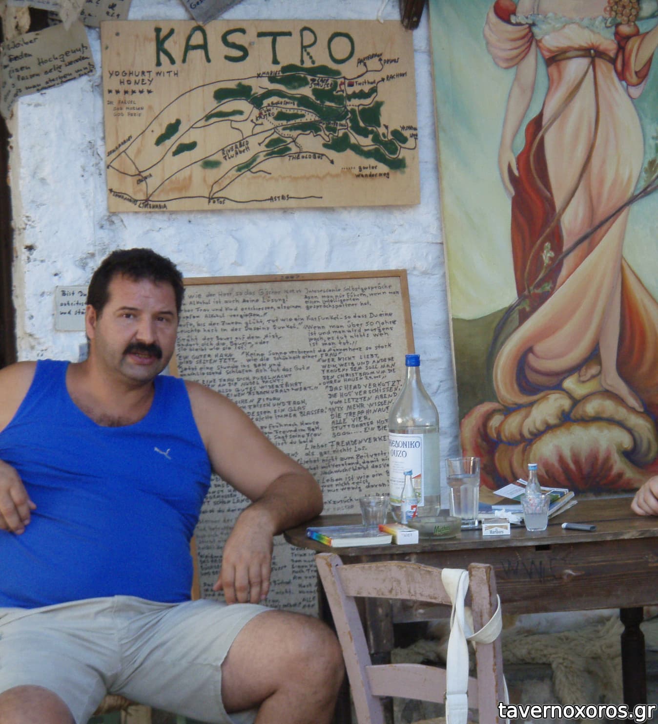 Δύο μέρες μετά ανεβήκαμε με σκοπό να φάμε και να πιούμε. Τα φαγητά ήταν μέτρια (και τσιμπημένα από φράγκα) αλλά δεν είχε απολύτως καμία σημασία. Ο λαϊκιστής Κώστας και η εκλεκτή παρέα του (οι αλλοδαποί εργάτες, μια ετοιμοθάνατη γιαγιά, η γυναίκα του, ο βοσκός ο Μεταξάς με τα ακαταλαβίστικά του, τα γατιά και η σκύλα Σία) αρκούσαν. Αφού ήπιαμε τα κέρατά μας και πάλι, φύγαμε με την δύση και αποχαιρετιστήκαμε κρατώντας τις καλύτερες αναμνήσεις :)
