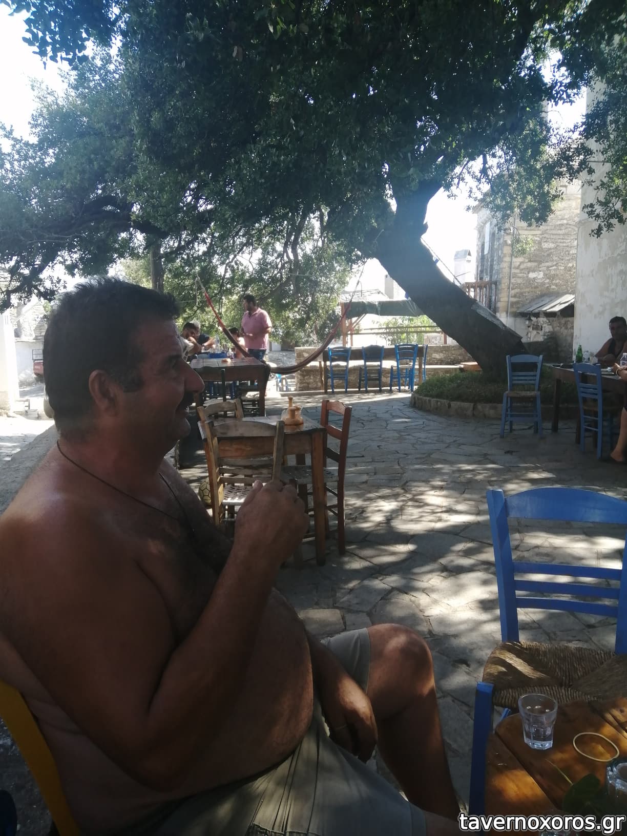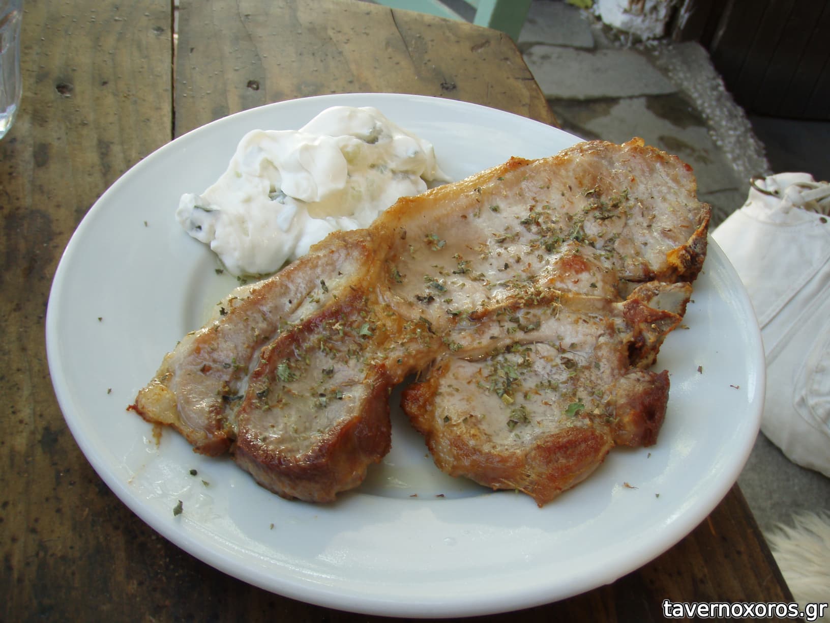 Το πέτρινο χωριό πανέμορφο όπως και το άγριο τοπίο. Φτάσαμε στην ταβέρνα μετά από επιδρομή αλλοδαπών τουρισταίων του πούλμαν και η κατάσταση σε κουζίνα-τραπέζια ήταν βομβαρδισμένη, κάτι μεταξύ συσσιτίου και πανηγυριού. Η κατάσταση υγιεινής οριακή αλλά οκ, δεν πειράζει, τα τραπεζάκια δίπλα στην εκκλησία του Αγίου Αθανασίου όμορφα και τραβηχτικά.