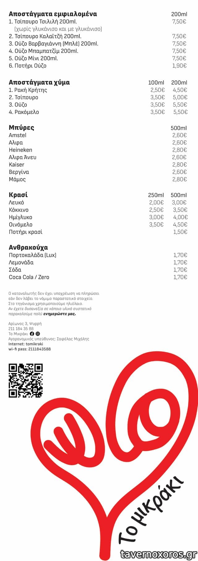 Δε 07:30-16:00, Τρ-Πε 07:30-00:00, Πα-Σα 07:30-01:00, Κυ 12:00-23:00