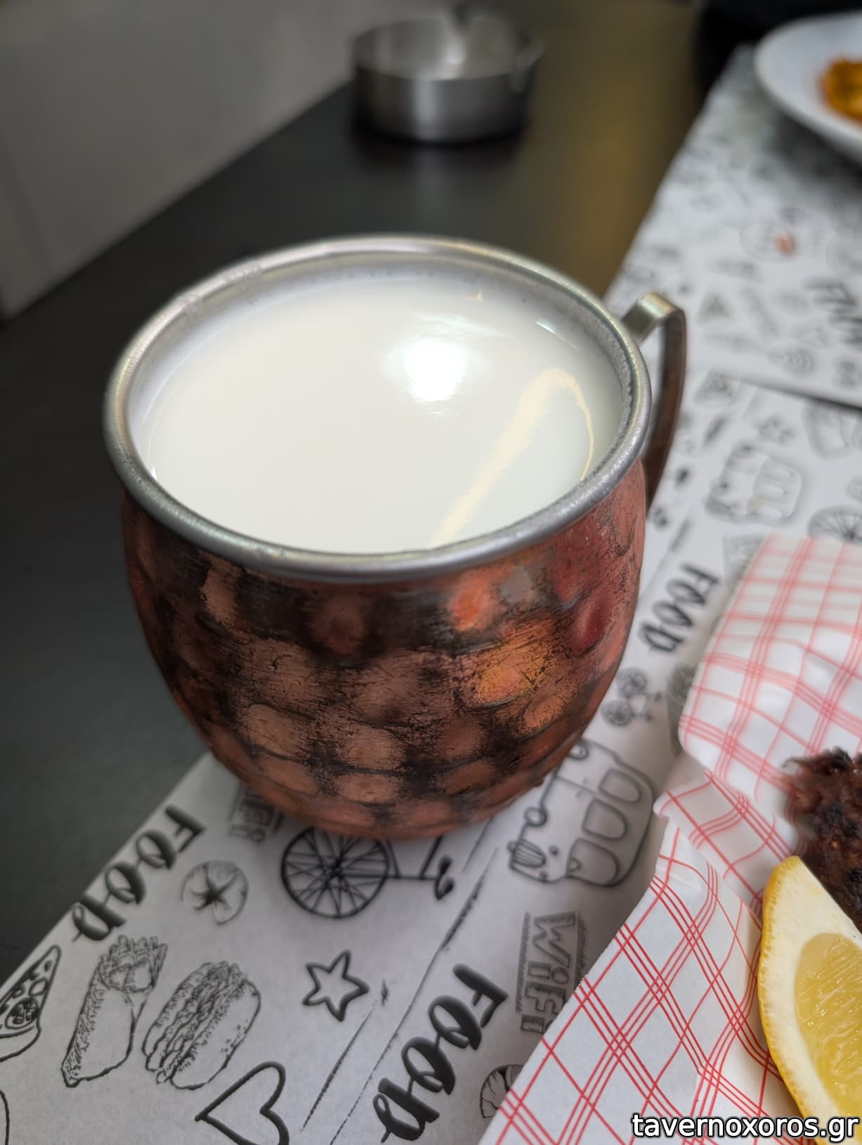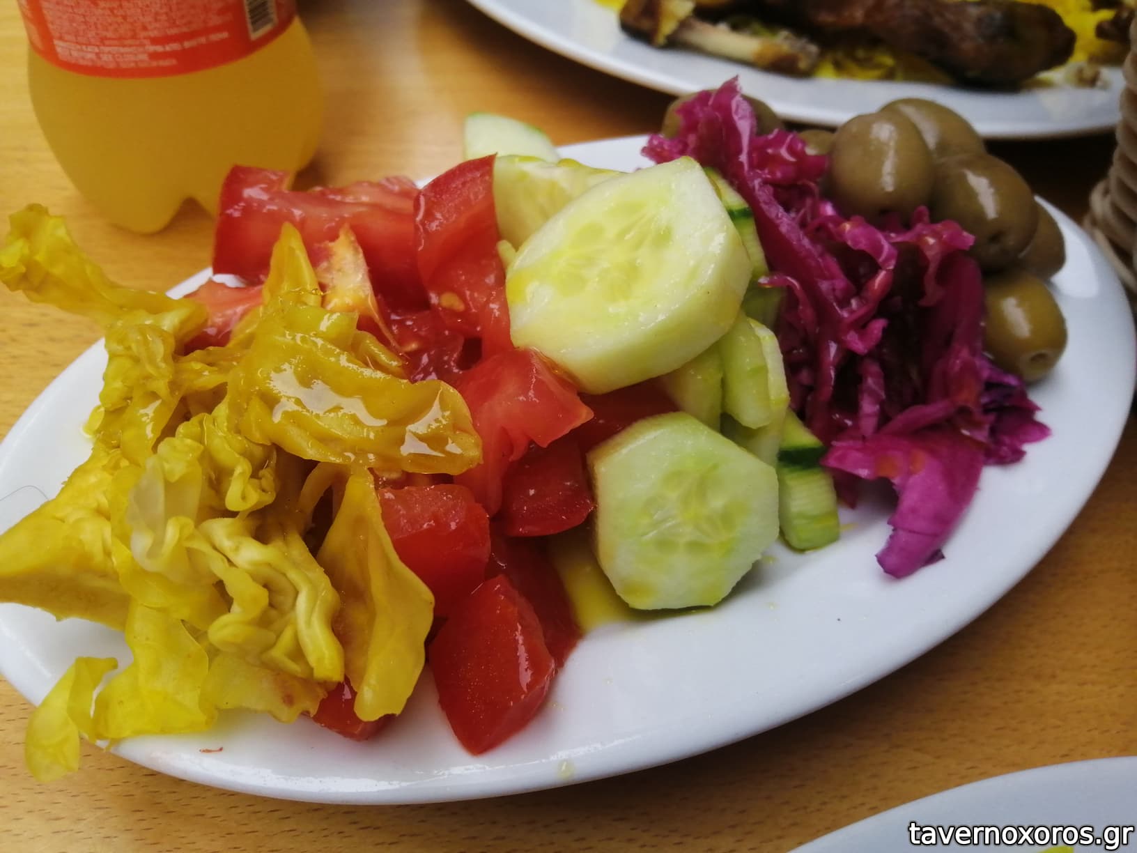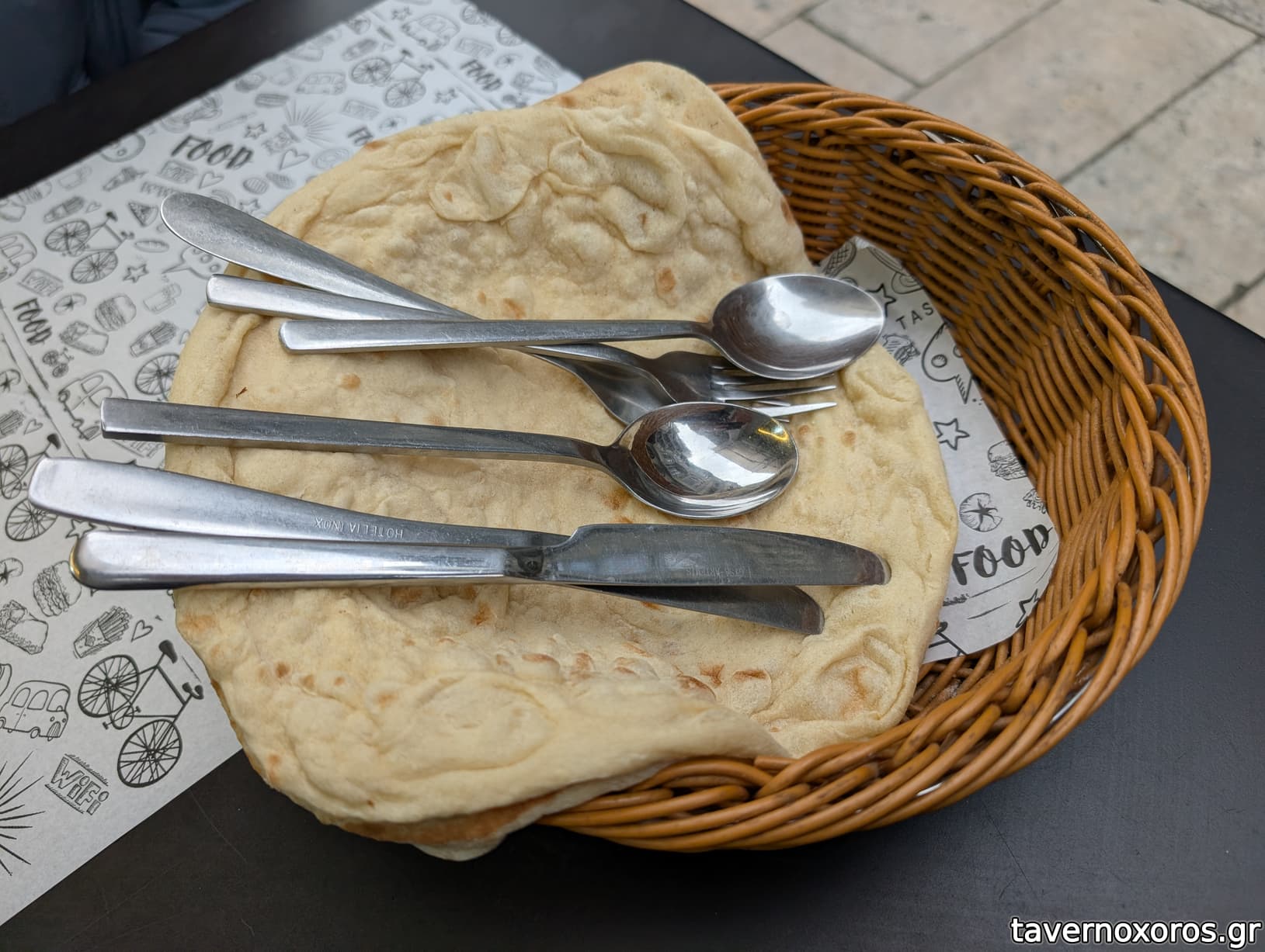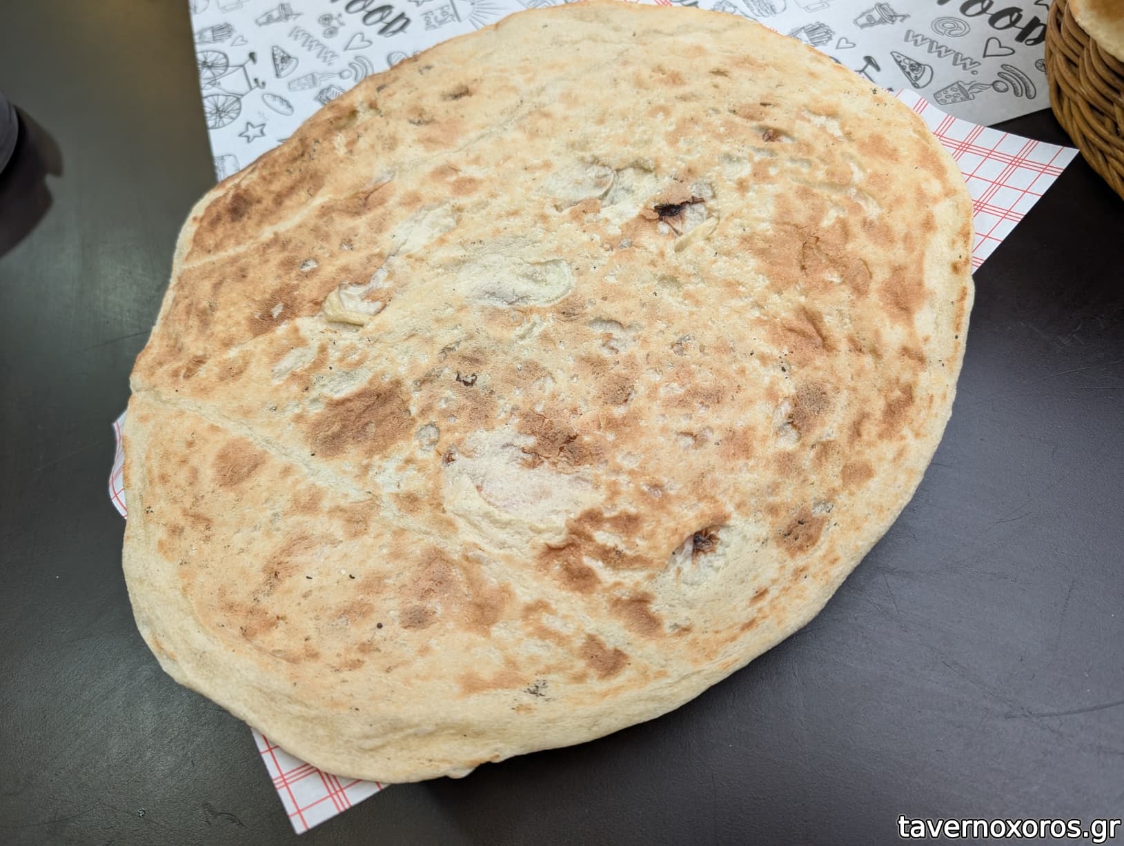 Ο ίδιος με είπε να μην προτιμήσω το ψωμί, μιας και δεν ήταν τόσο φρέσκο και έτσι μαζί με έφερε μια πίτα κομμένη σε κομμάτια η οποία δεν με ενθουσίασε και πολύ. Ίσως αν ήταν λίγο ζεστή (την έβγαλε από τη συσκευασία που βρισκόταν στον πάγκο και ήταν κάπως κρύα) να ήταν καλύτερη.