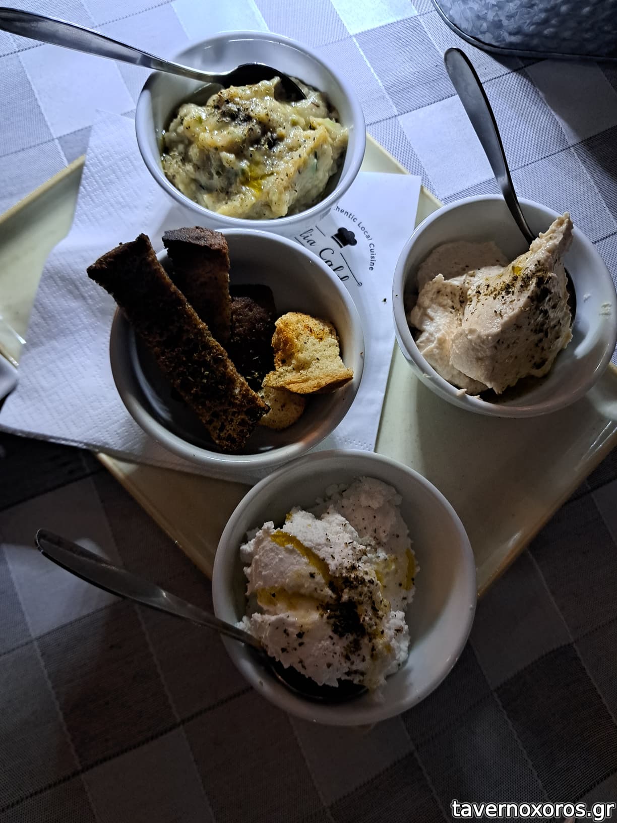 Τριλογία αλοιφών (καπνιστή μελιτζάνα, ταραμάς, τουλουμισιο) - καλό. Χειροποίητα όλα.