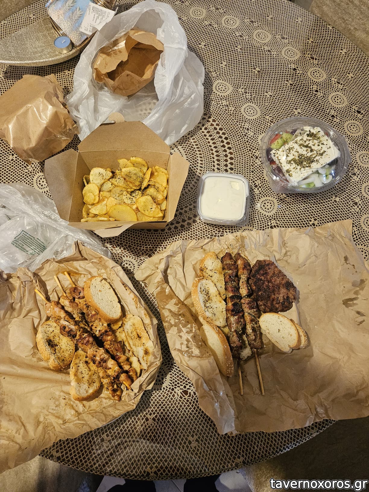 Σουβλάκια χοιρινά (καλά), σουβλάκια κοτόπουλο (πολύ καλά), μπιφτέκι (μέτριο), γαλοτύρι (πολύ καλό) και χωριάτικη