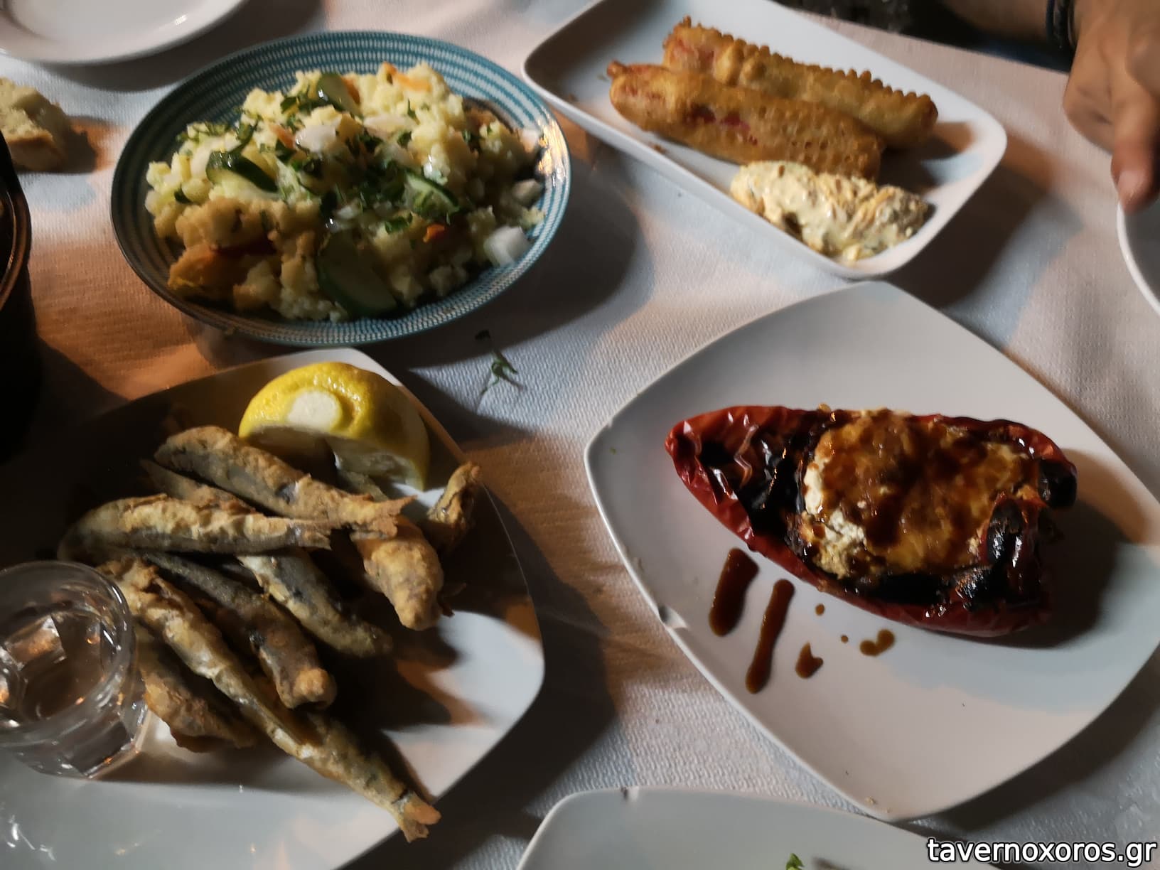 1η γύρα - γαύρος τηγανητός (μια χαρά), πιπεριά γεμιστή με τυρί (οκ), μπουρεκάκια με καβουρόψιχα και ροκφόρ (κακό), πατατοσαλάτα (οκ)