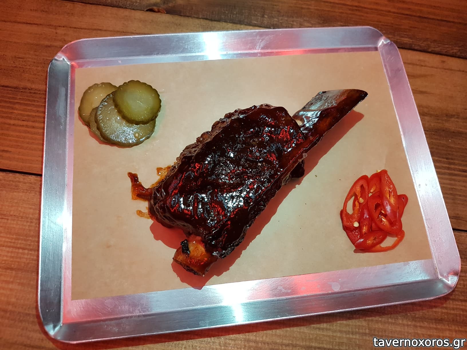 "Black Angus μοσχαρίσιο short rib ωρίμανση (500g) σιγομαγειρεμένο με house bbq" (καλό, αλλά υπερβολικά ακριβό στα 18,5€)