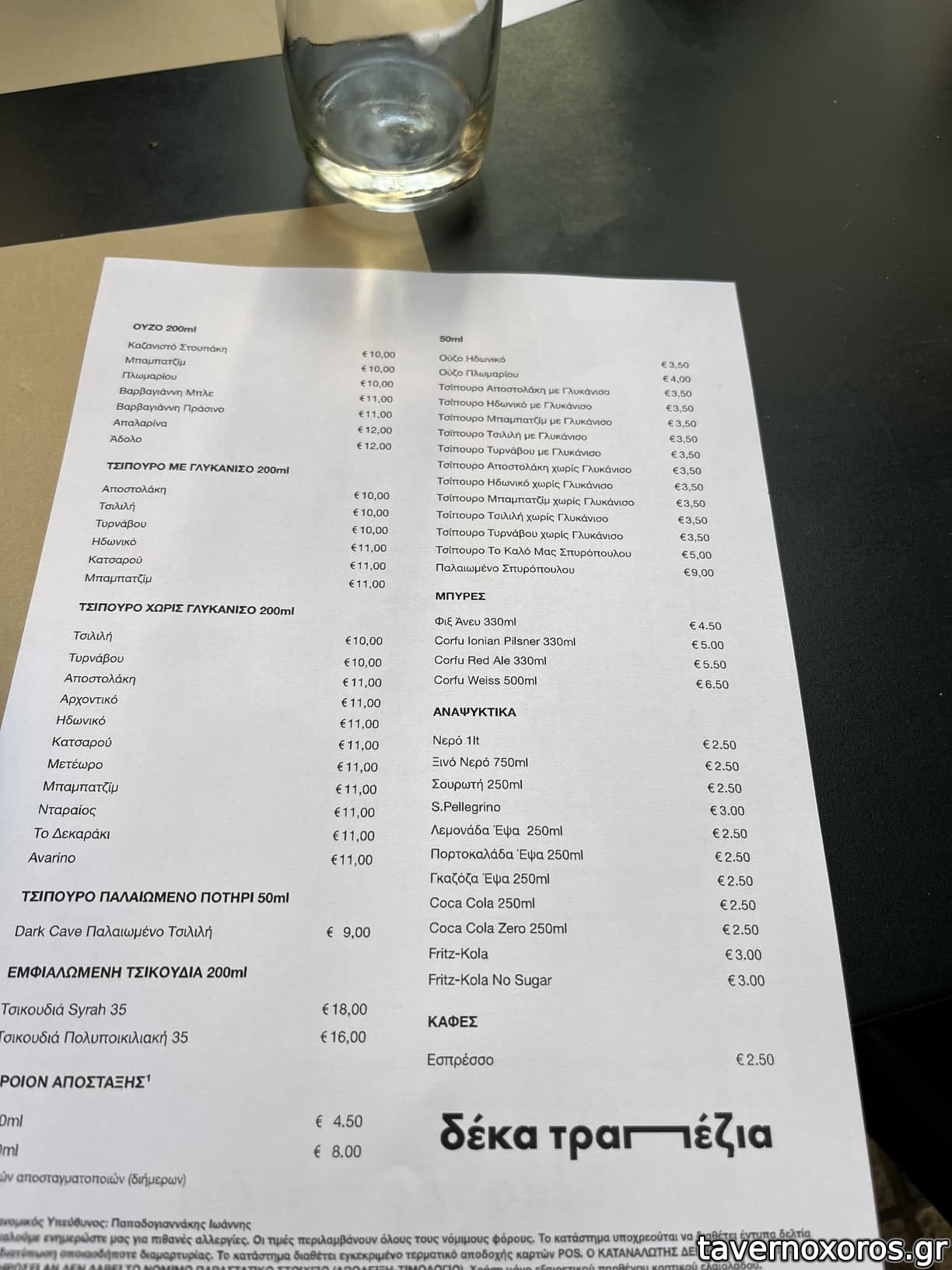 Για όλα τα παραπάνω, συν τρία τσίπουρα εμφιαλωμένα των 200ml. και μία μπύρα δώσαμε 98€ (4 άτομα). Στο τέλος μας κέρασαν και κρέμα λεμονιού – επίσης νοστιμότατη.